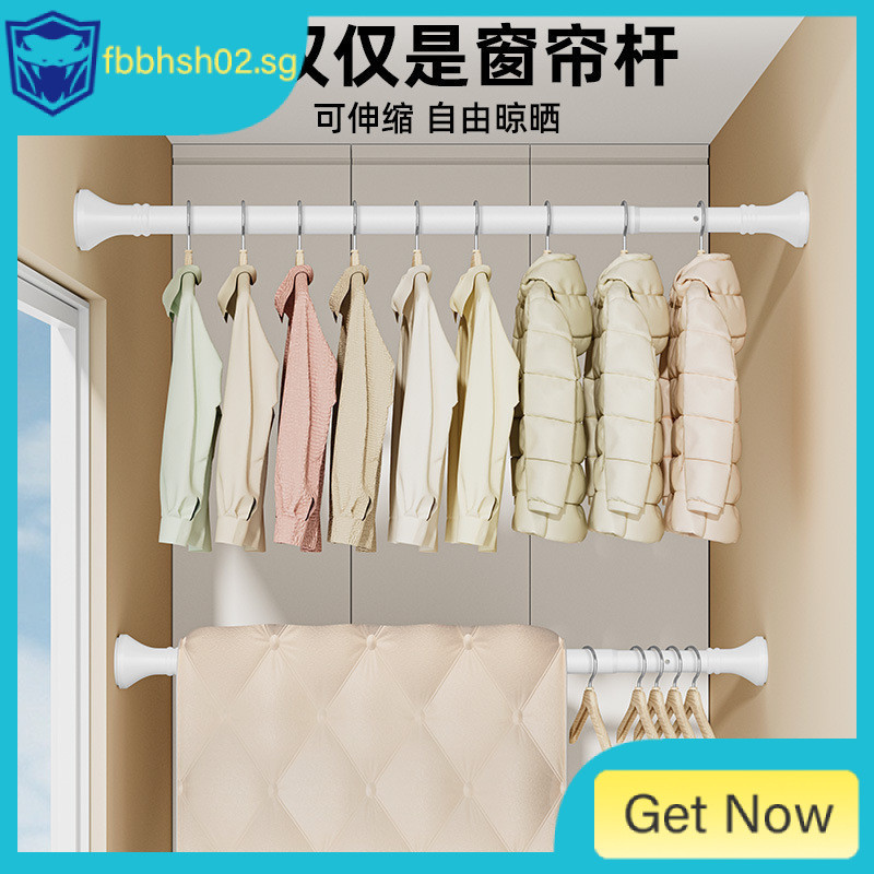[in stock] Roman Rod No-Drill Installation Curtain Rod Single Rod Curtain Bracket Rod Clothes Drying Rod Telescopic Clothes Rod Fixing Device