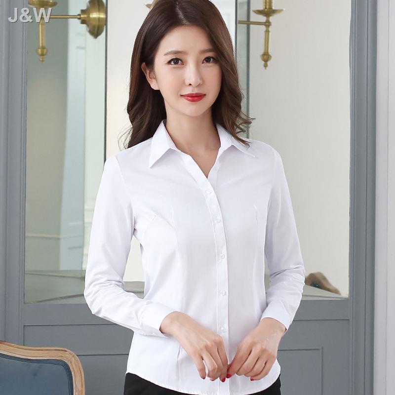 S-5XL Formal Cotton White Shirt Women Office Wear Ladies Long Sleeve Business V-Neck Blouse Top