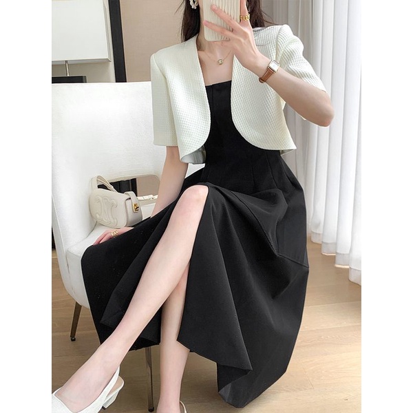 Beige white French fashion short-sleeved suit jacket women temperament short suit