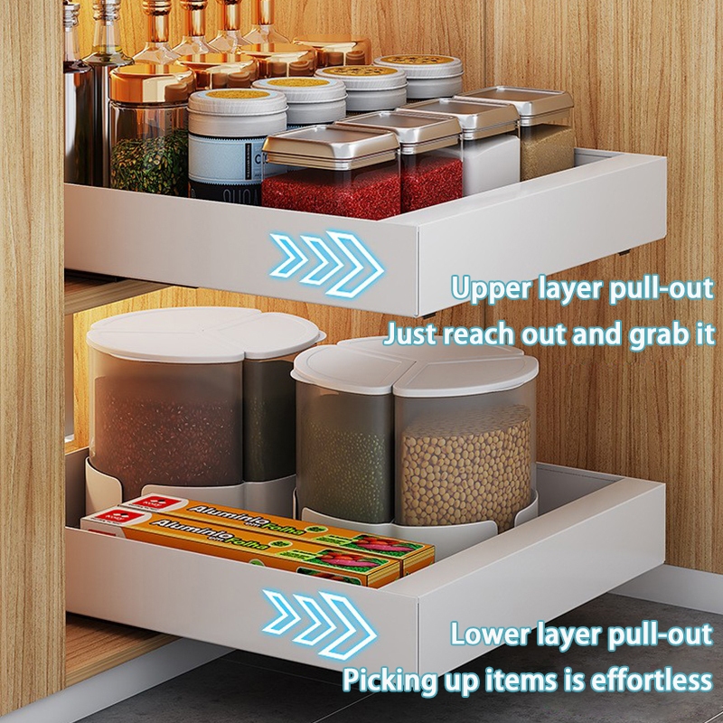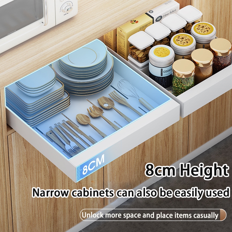 【SG STOCK】Drawer style Storage Basket in Cabinet Room | Non installation Double layer Bowl and Plate Cabinet Kitchen Se