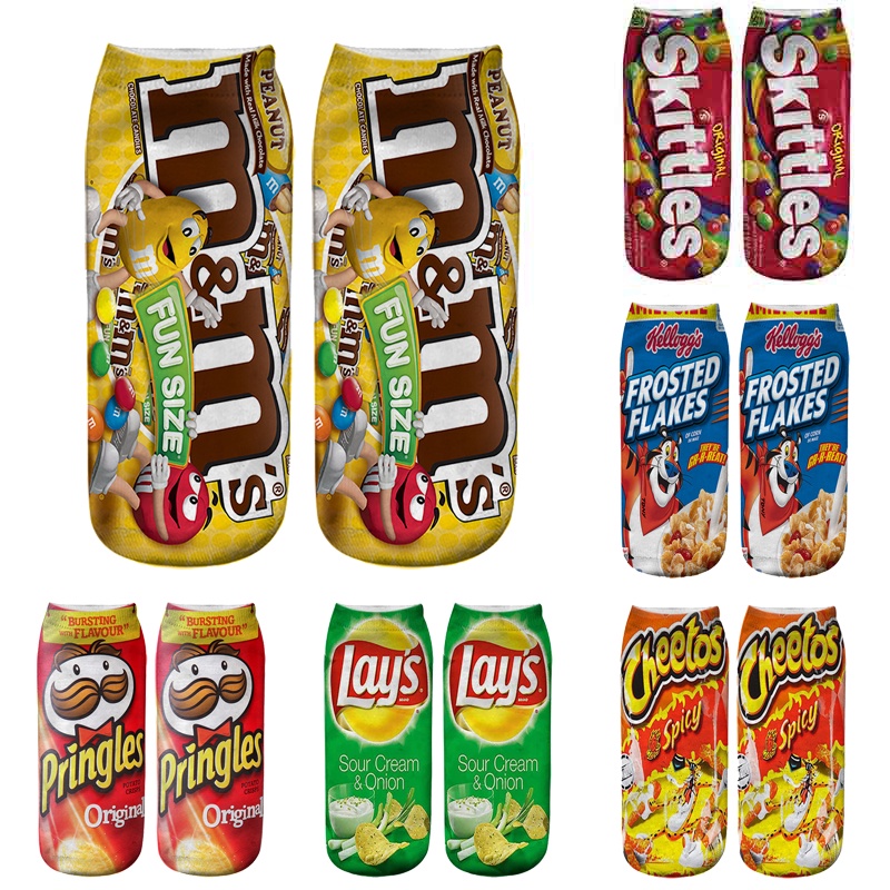 Unisex Painting Art Socks Men 3D Potato Chips Harajuku Printed Women Socks Funny Cotton Ankle Socks