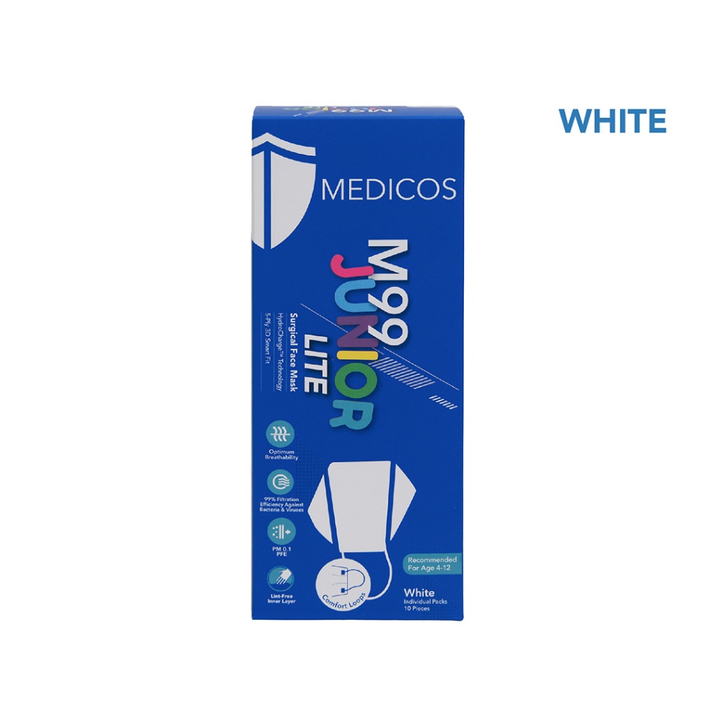 MEDICOS 5-ply M99 JUNIOR Lite Surgical Face Mask - Junior (White) [10 pcs/box]