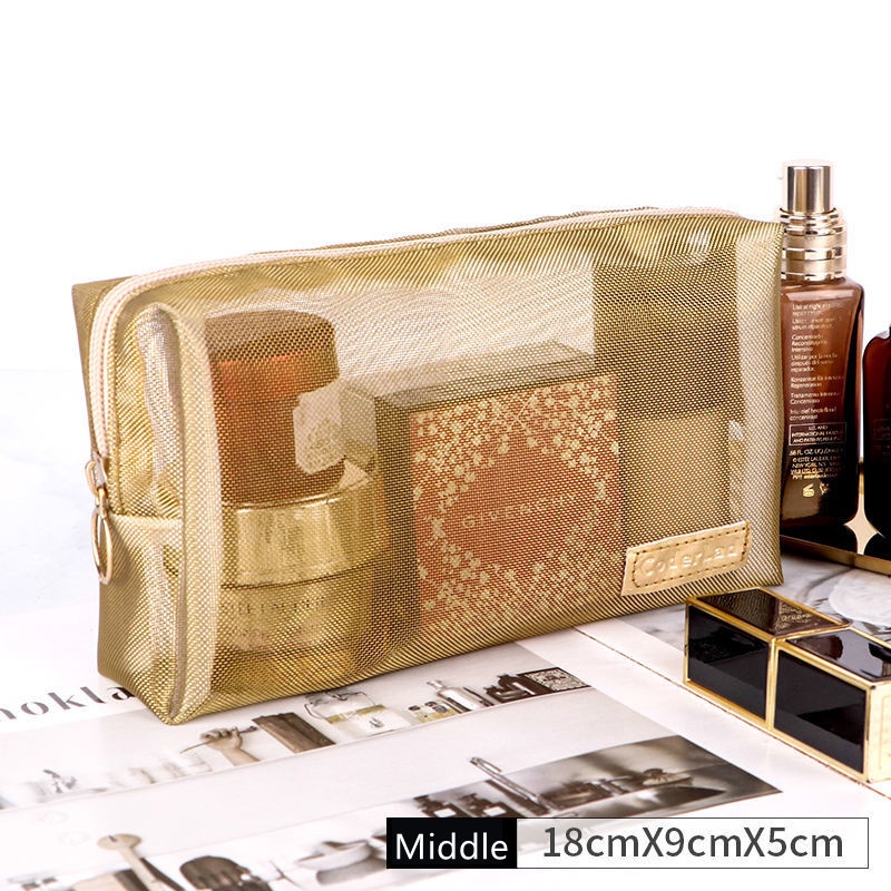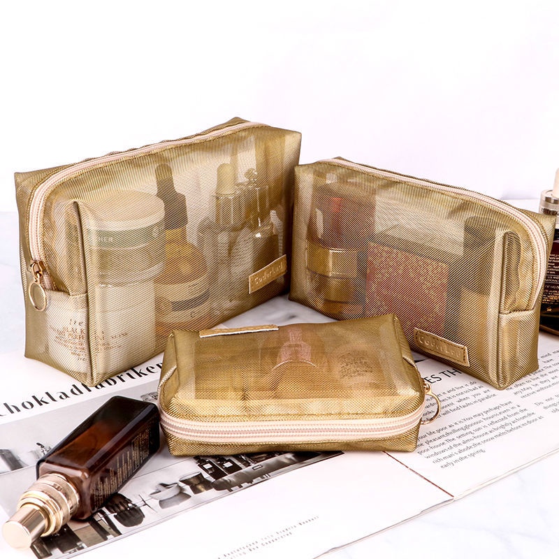 New Arrive Gold Makeup Pouch Korean Fashion Cosmetic Bag Large Capacity Travelling Organizer Storage Bag Case