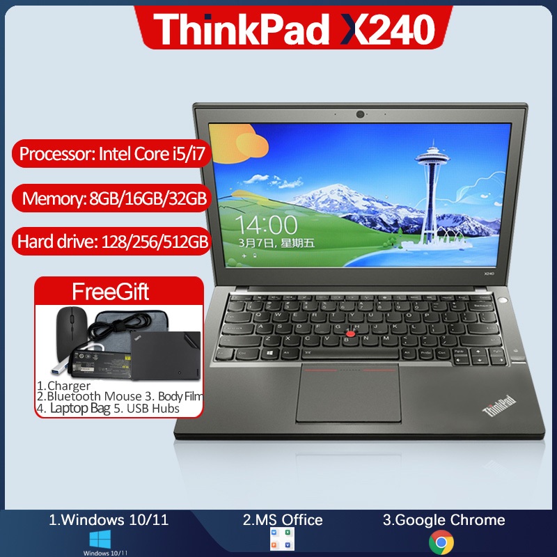 [Brand New] Lenovo ThinkPad X240 Laptop Intel Core i7/i5/i3 4600u/4200u/4010u 4th Gen 4GB/8GB RAM 128GB/256GB/512GB SSD 12.5 Inch Win10/11 pro