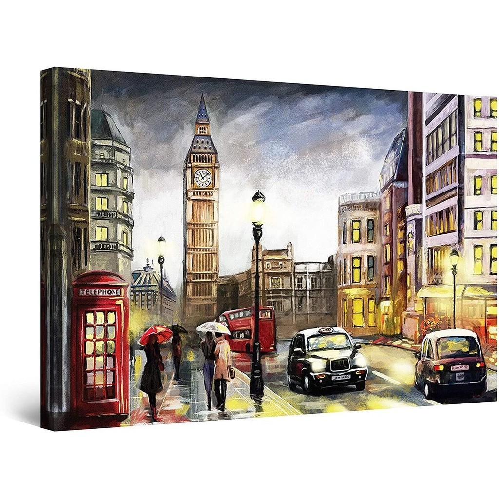 Canvas Wall Art Abstract Rainy Day in London Big Ben Painting Framed