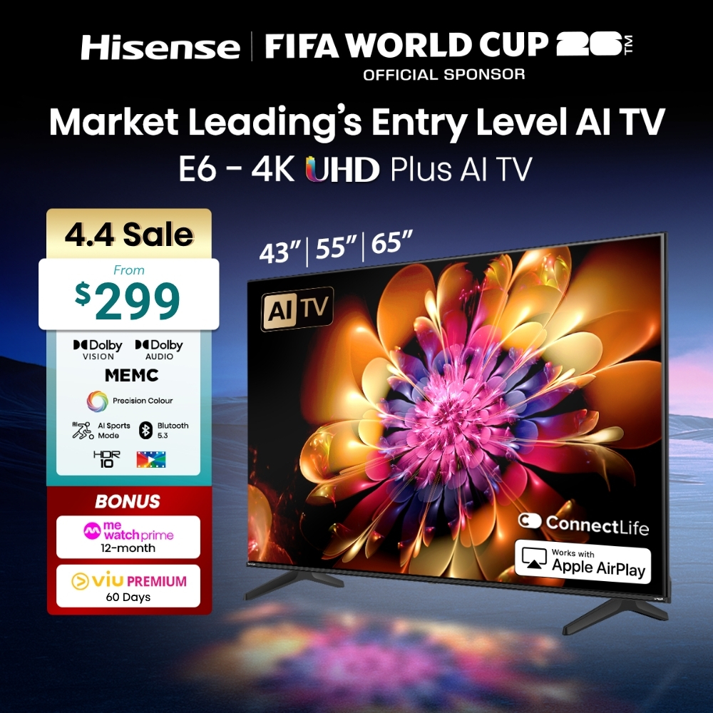 Hisense E6Q 43/55/65 inch 4K UHD Plus AI TV | Dolby Vision & Audio | DTS VirtualX | MEMC