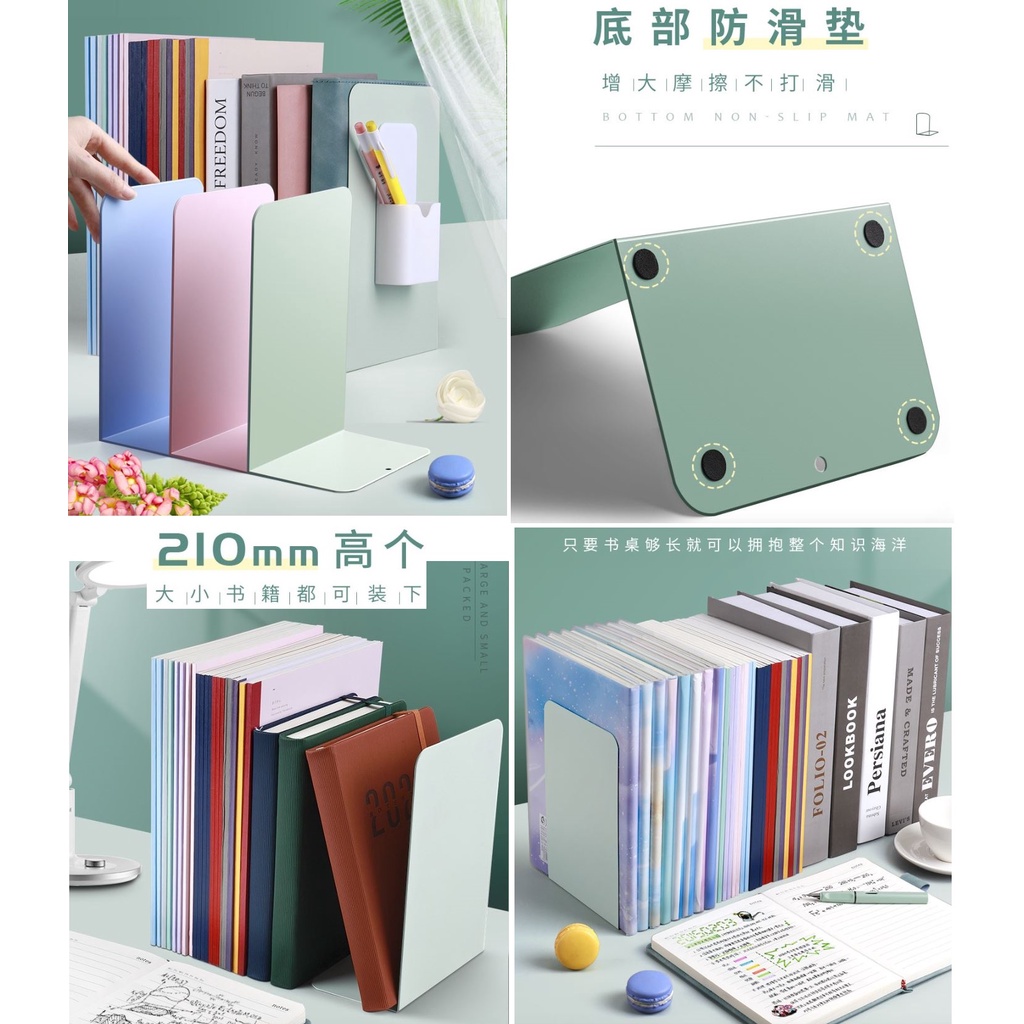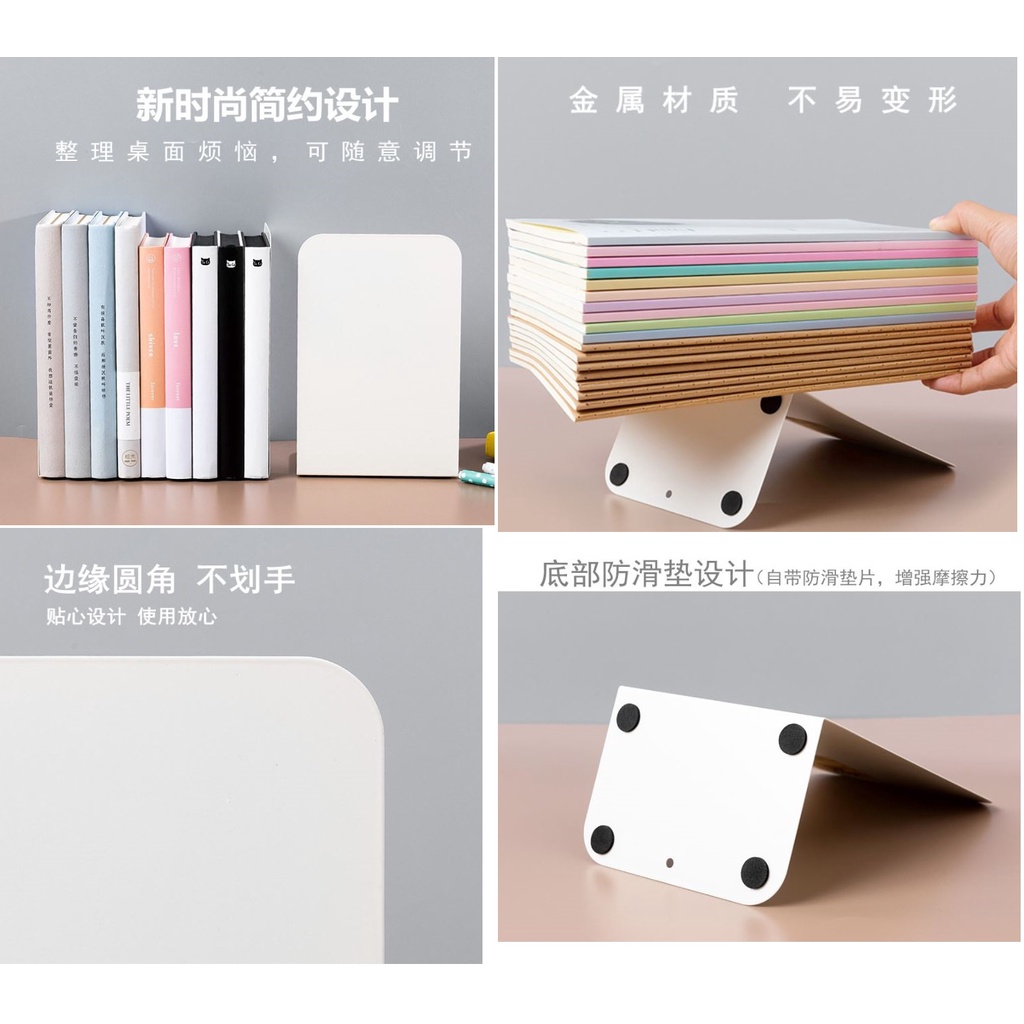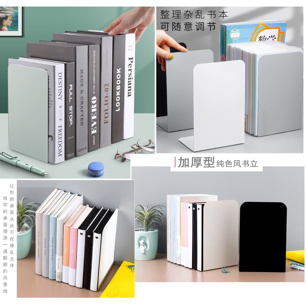 Muji Style Metal L-Shaped Bookshelf Bookend Bookrest Storage Desktop Movable Desk Retractable Thickened Book Book Organizer