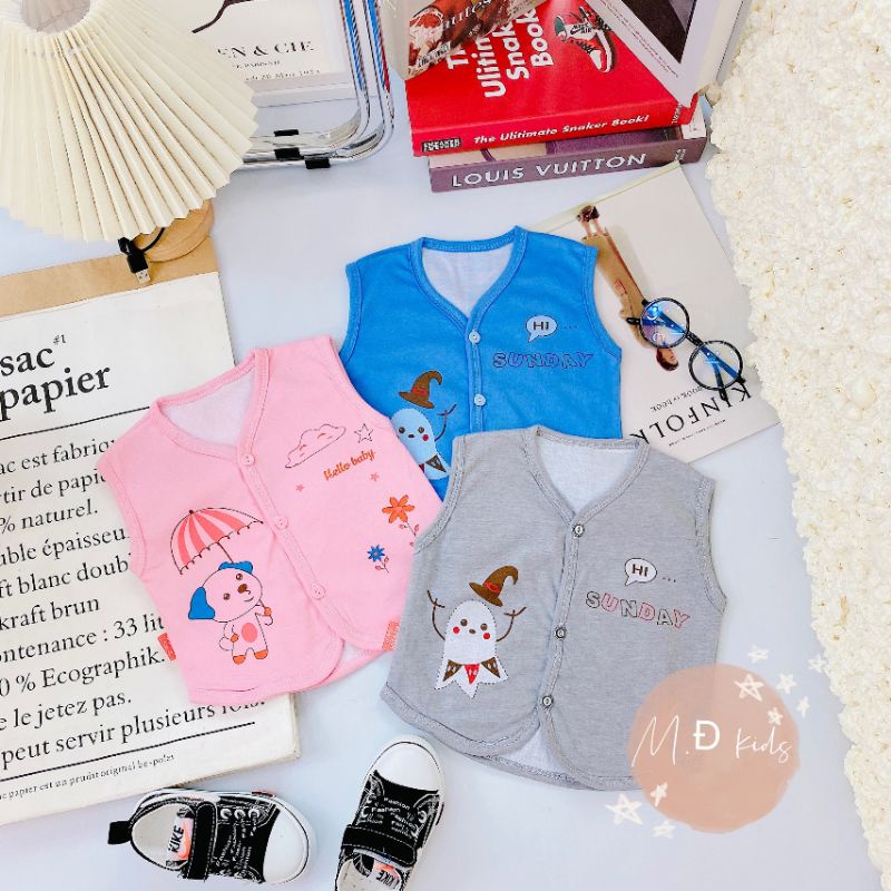 2-layer cotton newborn vest with bear print in many designs for babies 3-10KG