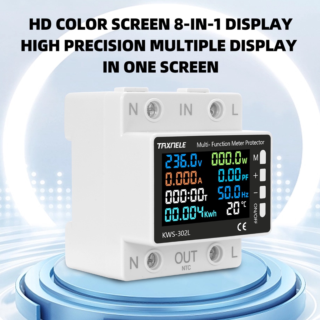 8in1 Energy Meter Power Meter Over Under Voltage Protection Relay Switch Circuit Breaker Energy kWh Temperature Meter Voltage protector KWS-302L