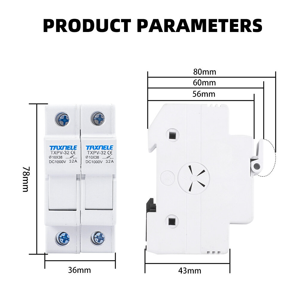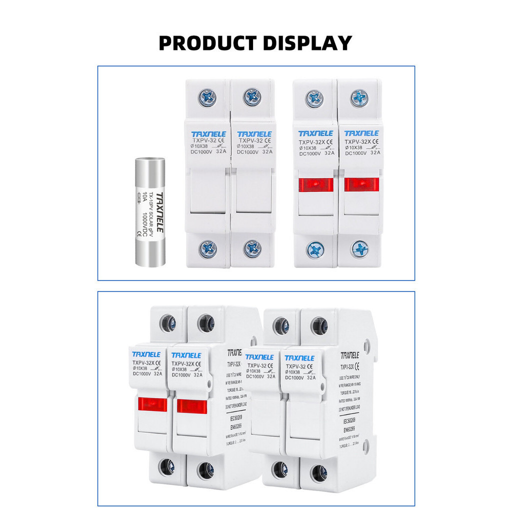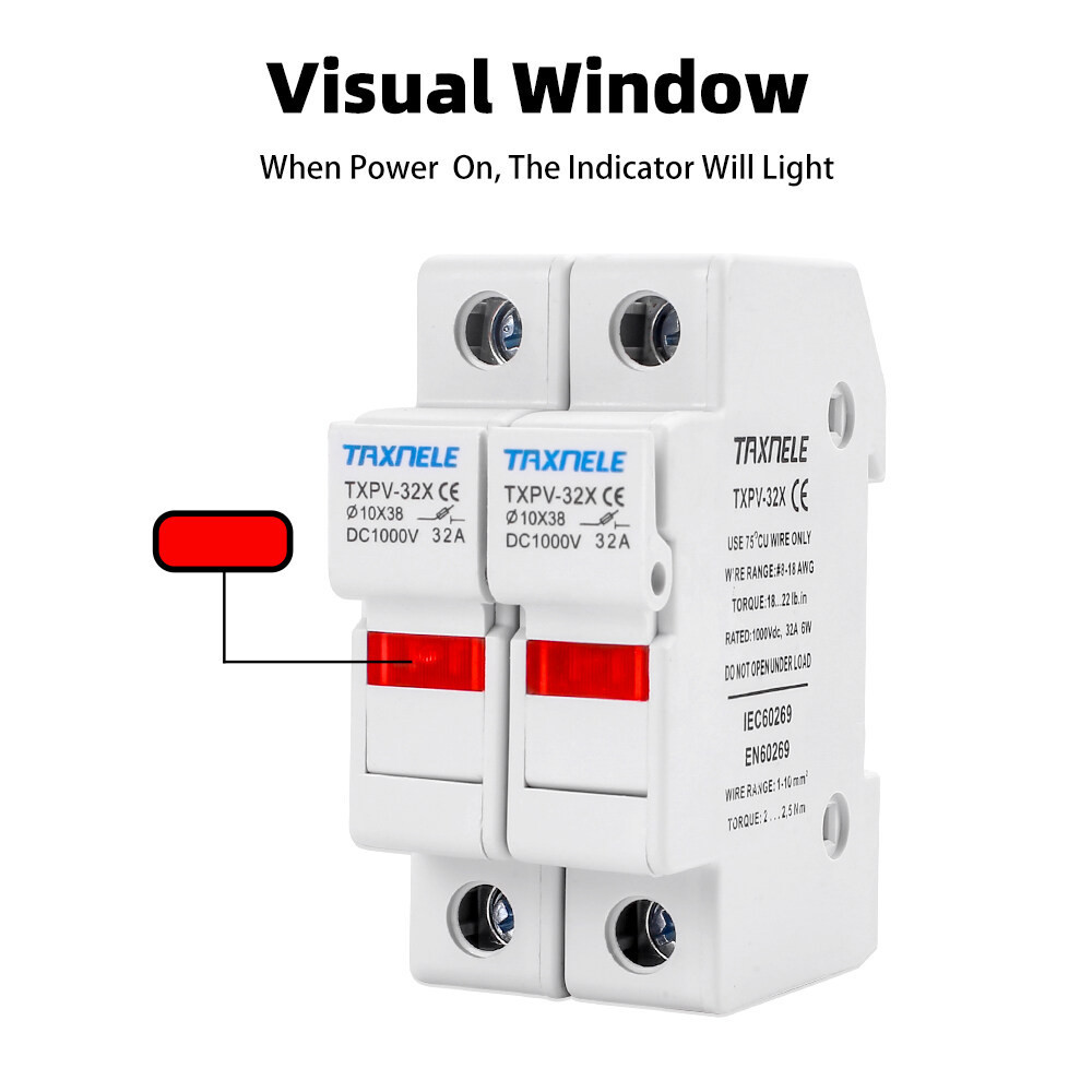 2P DC Fuse Holder Solar PV 1000V High Voltage Fuse with Base 6A 10A 15A 20A 25A 30A Photovoltaic System Protection Protector