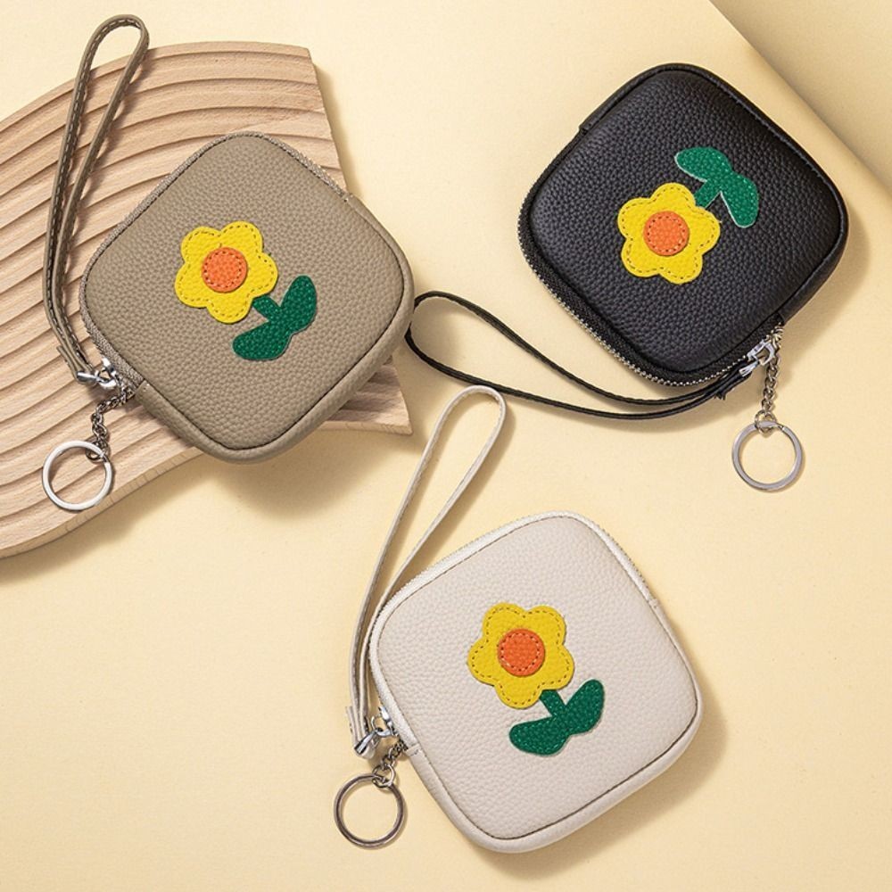 NORMAN Small Flower Wallet, Multifunctional Lovely Mini Lipstick Bag, Card Holder with Keychain Zipper Leather Earphone Storage Bag Travel