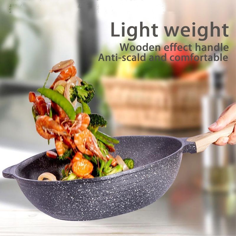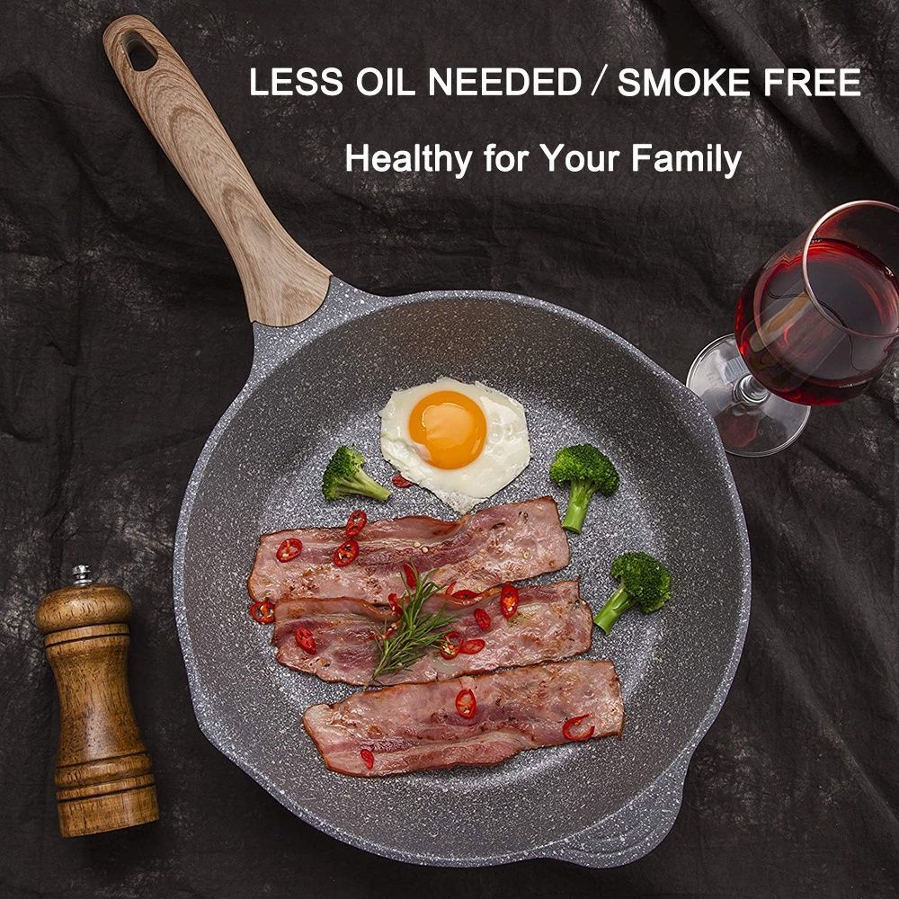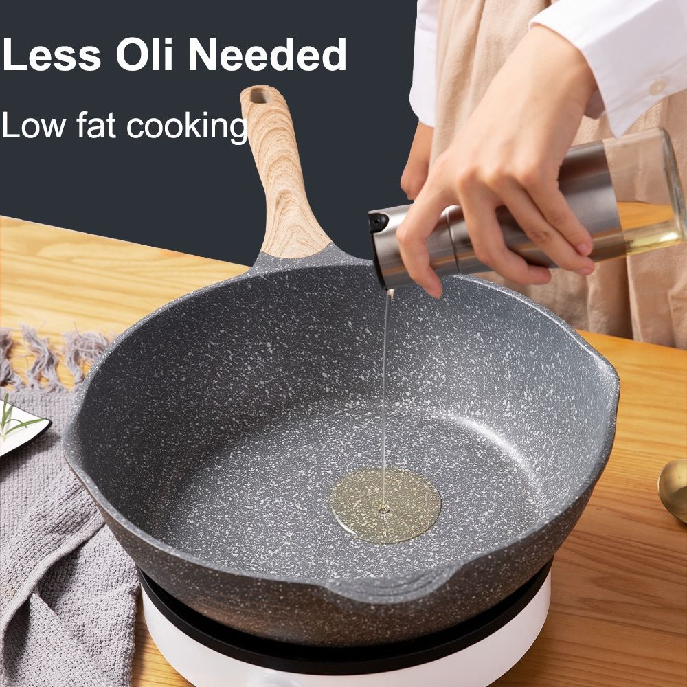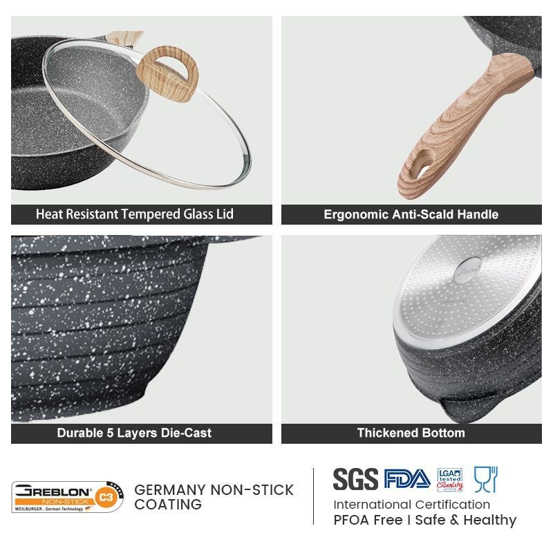 JEETEE Non-Stick Deep Pan with lid 24/28/32cm Maifan Stone Coating Classic Black Large Capacity Cooking Pan PFOA Free Suitable All Stoves