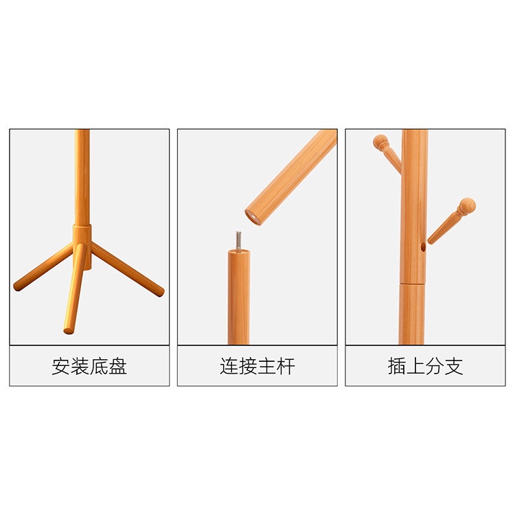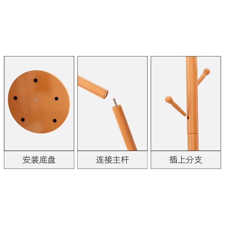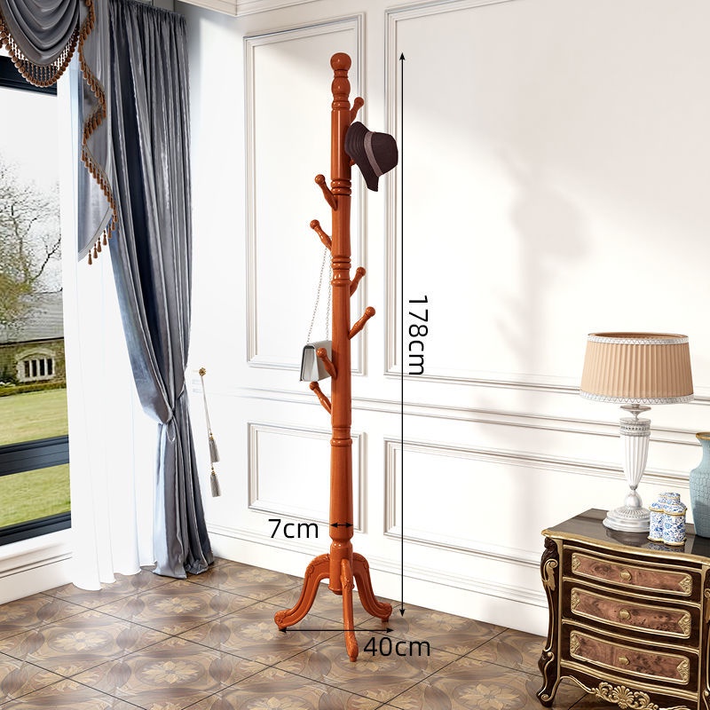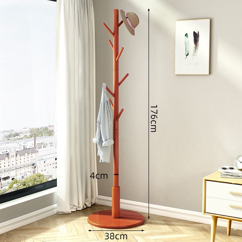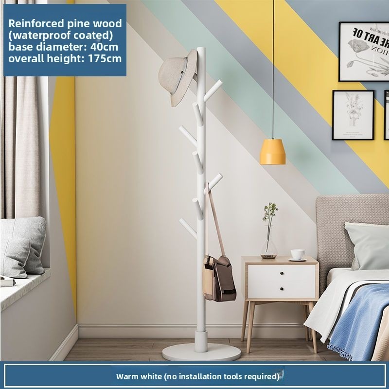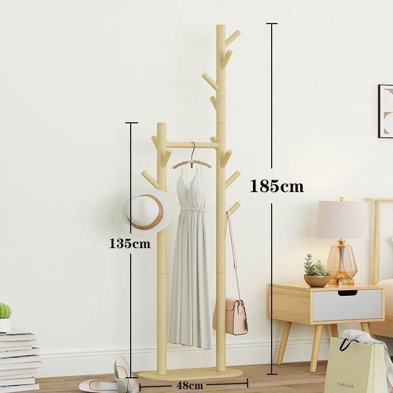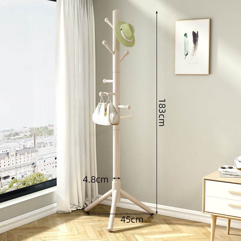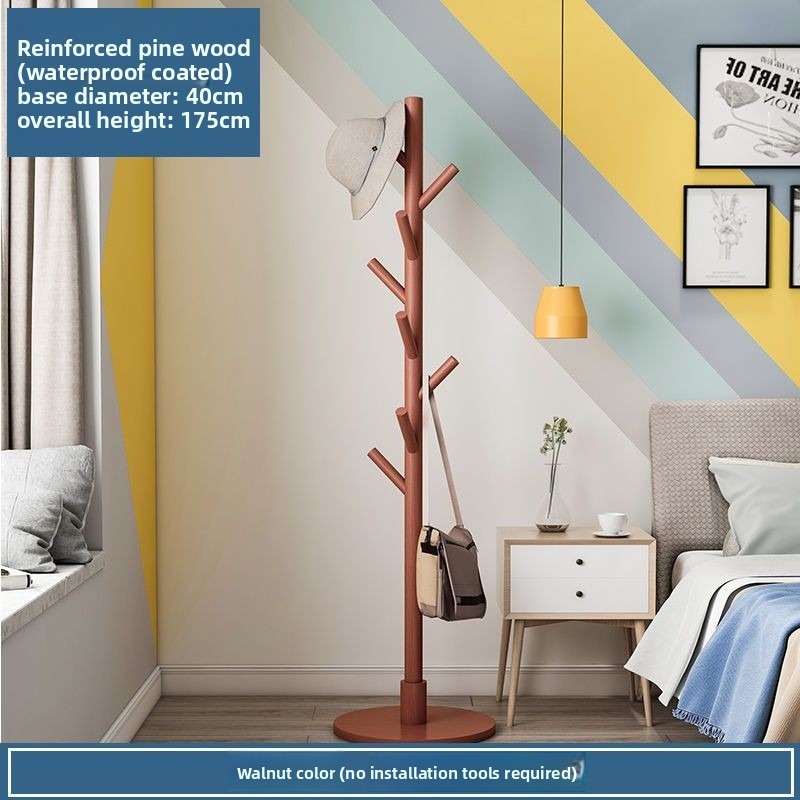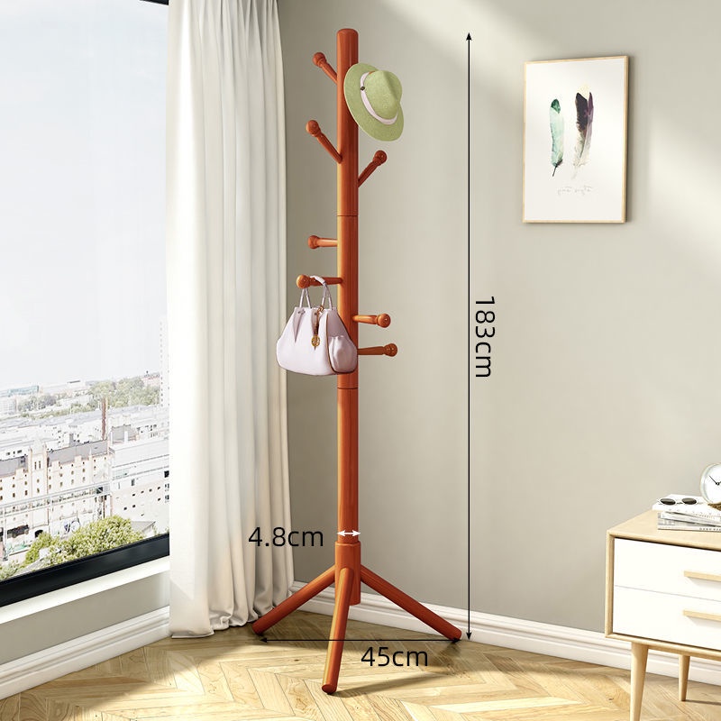 Solid Wood Coat and Hat Rack Bag Hanging Rack Floor Bedroom Household Minimalist Modern Simple Storage Rack Clothes Pole