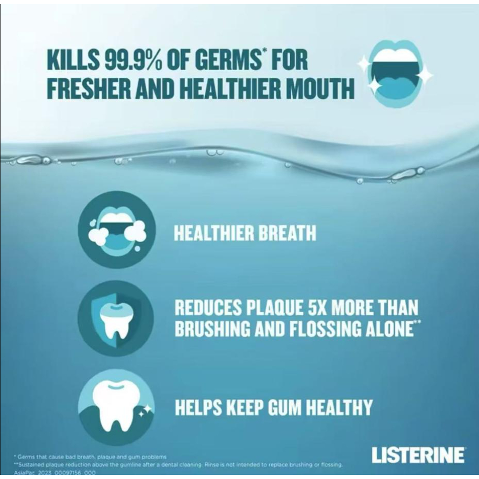 Listerine Antiseptic Mouthwash | Long-Lasting Fresh Breath & Oral Protection 1000ML