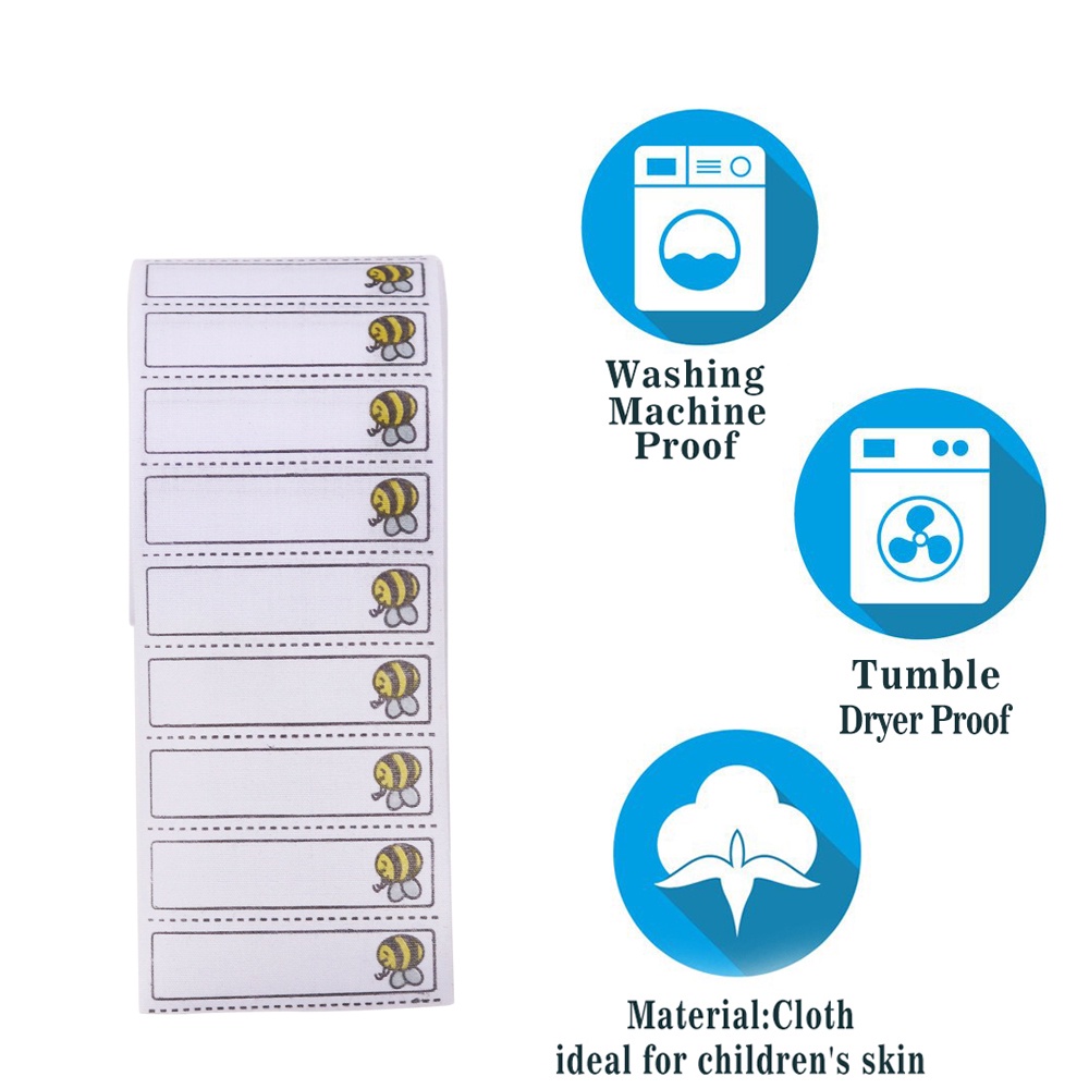 100/200Pcs Washable Iron on Name Labels+1pc free pen Bee Pattern Labels For Clothes Garment Tags Clothing Label for Child DIY Sewing Accessories