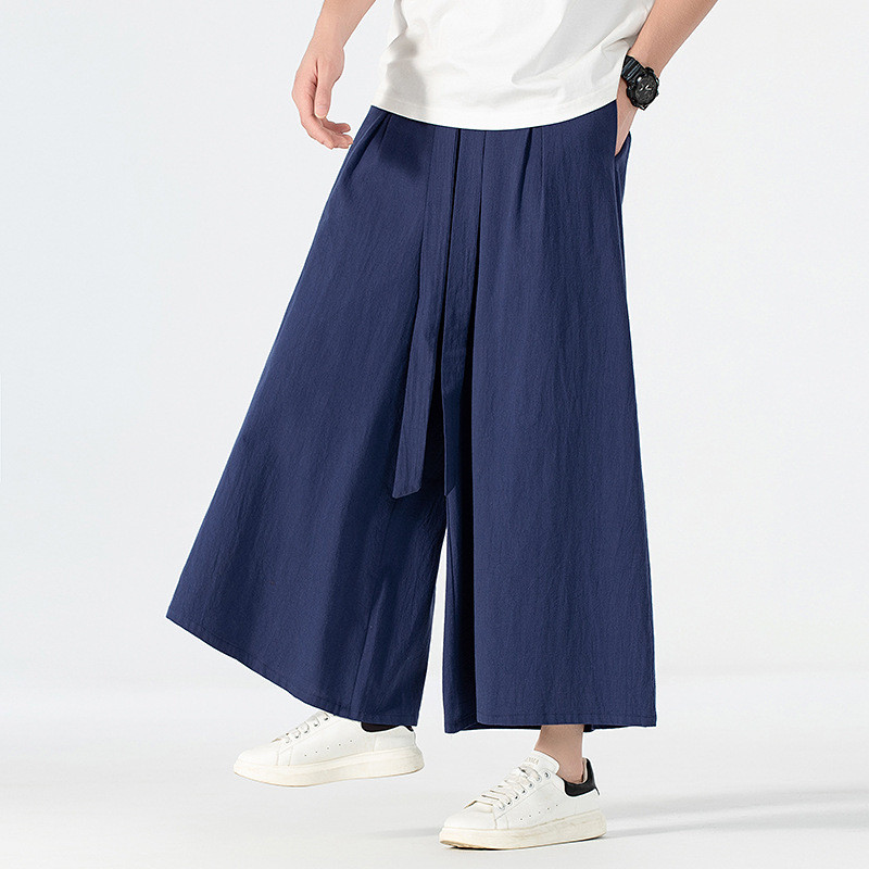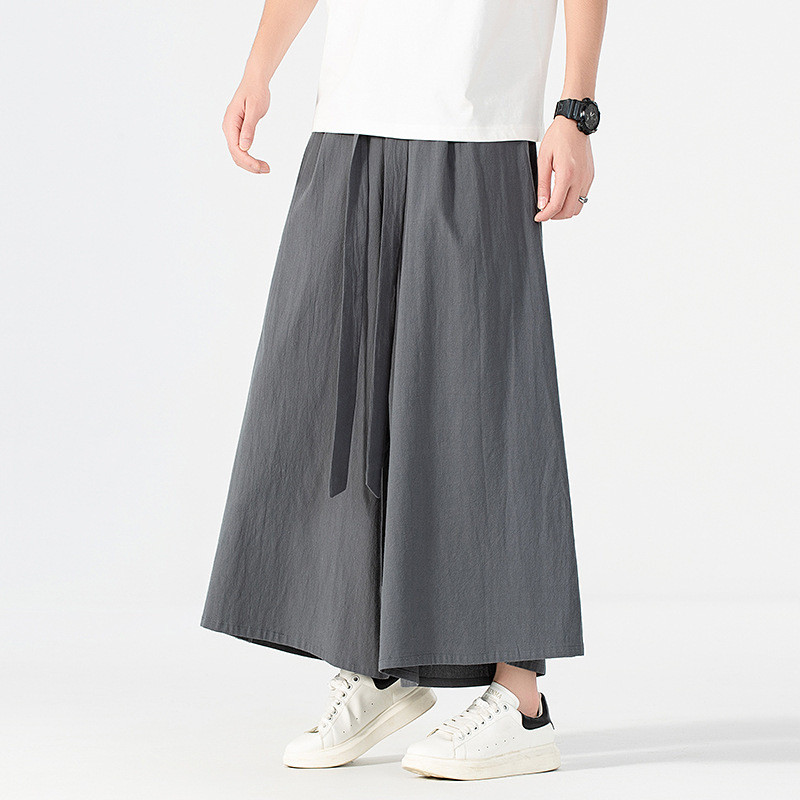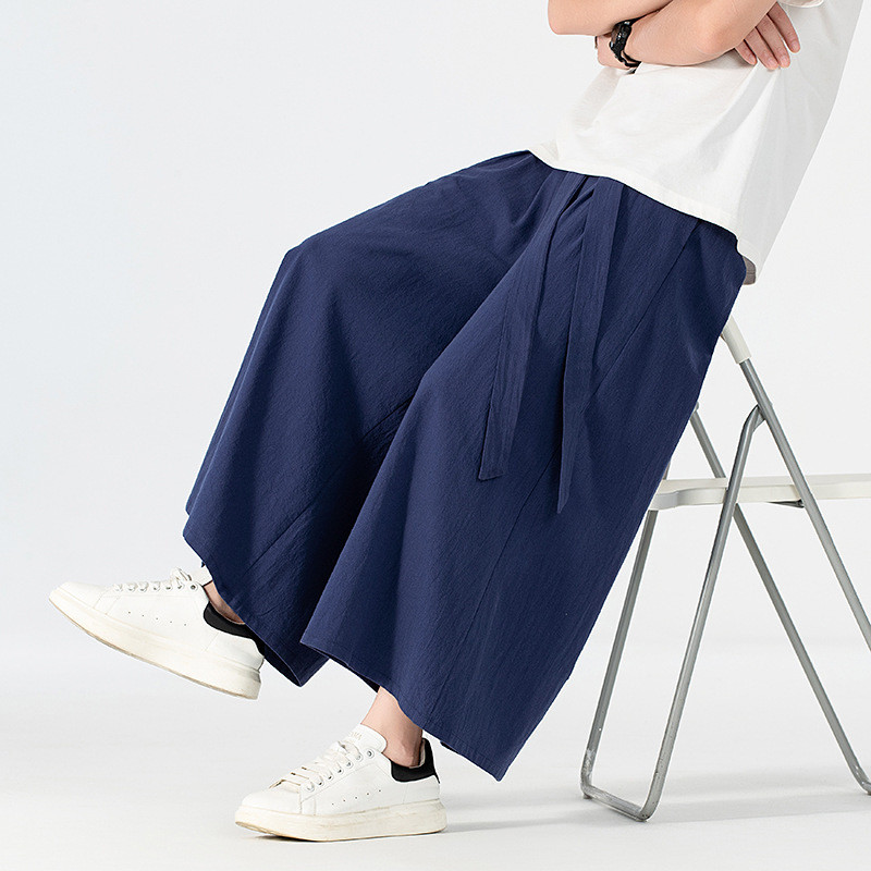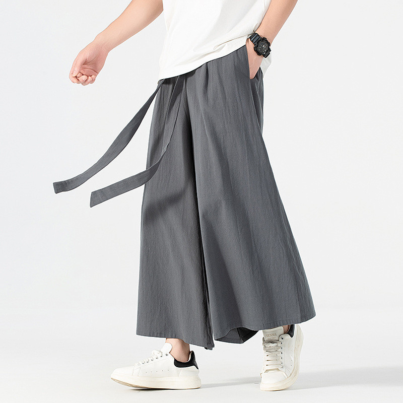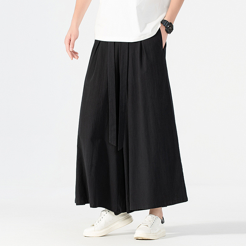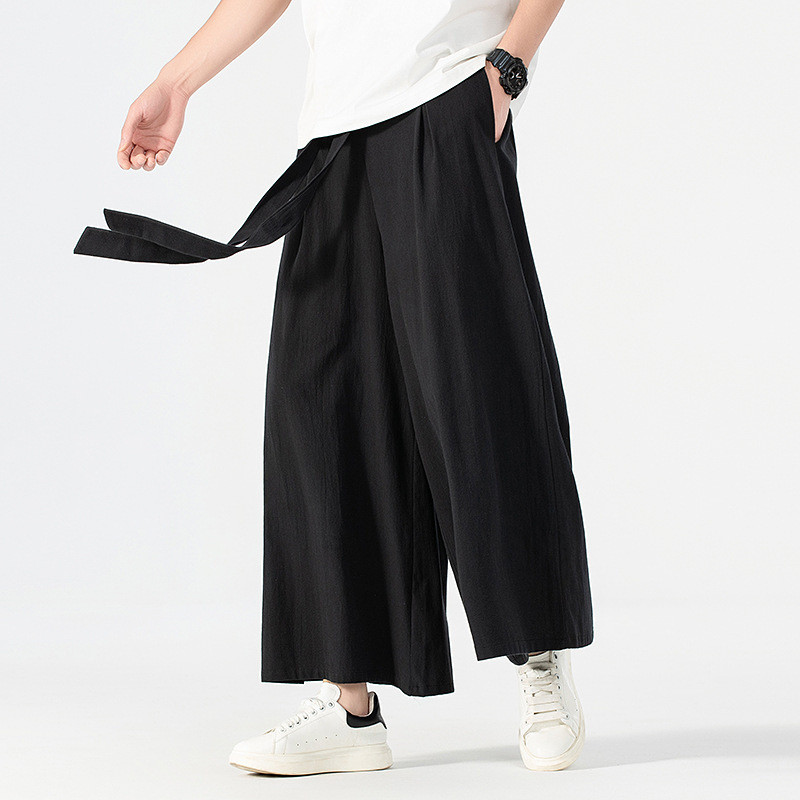 160KG Men Plus Size Japanese Kimono Harajuku Streetwear Summer Retro Linen Cotton Wide-Leg Loose Casual Trousers