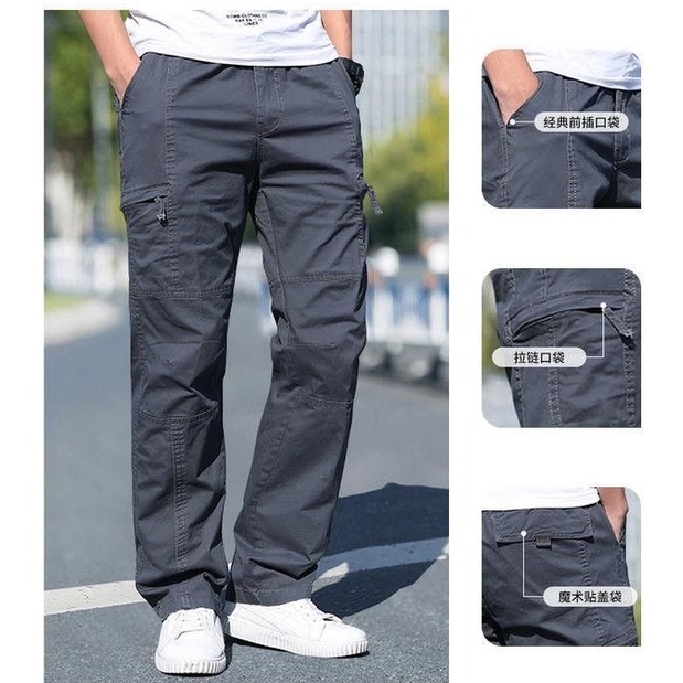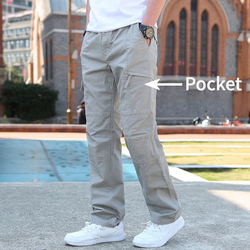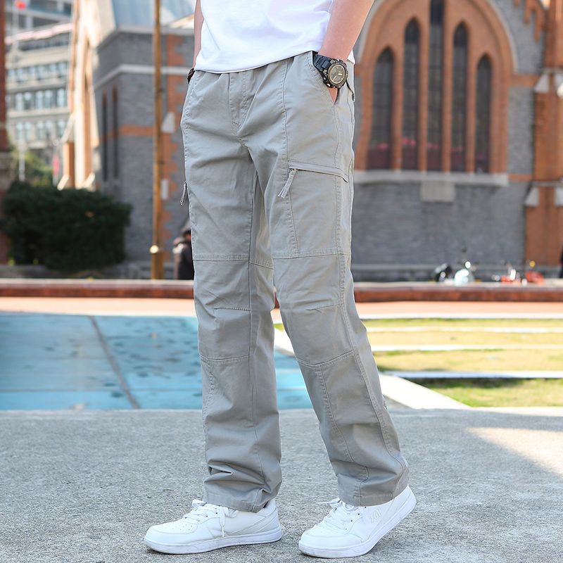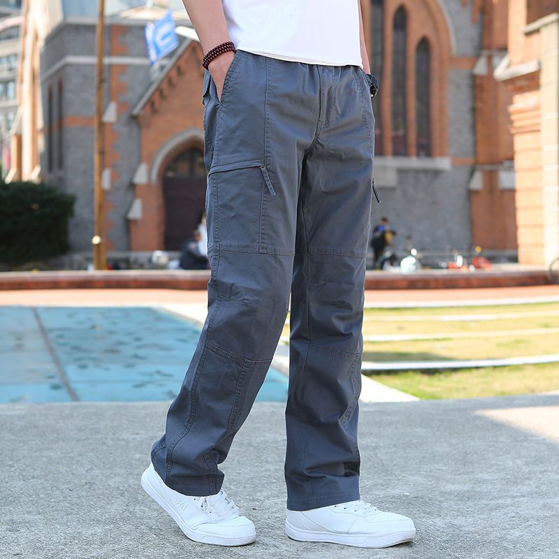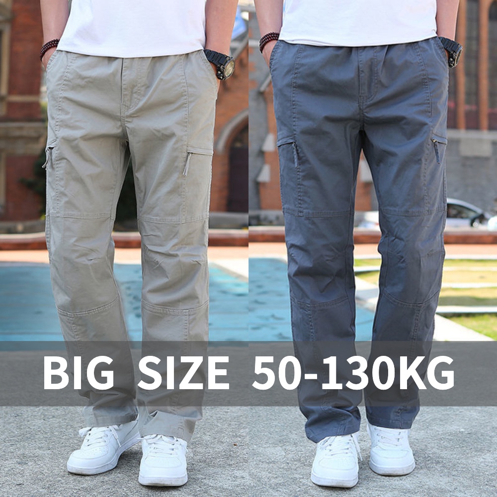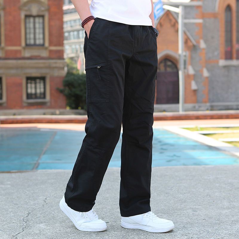 Oversize Men Pocket Cargo Pants Thin Cotton Breathable Plus Size Trousers