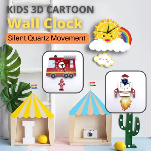 SG LOCAL Kids 3D CARTOON Silent Wall Clock with Pendulum Children's Bedroom Decoration Home Decor