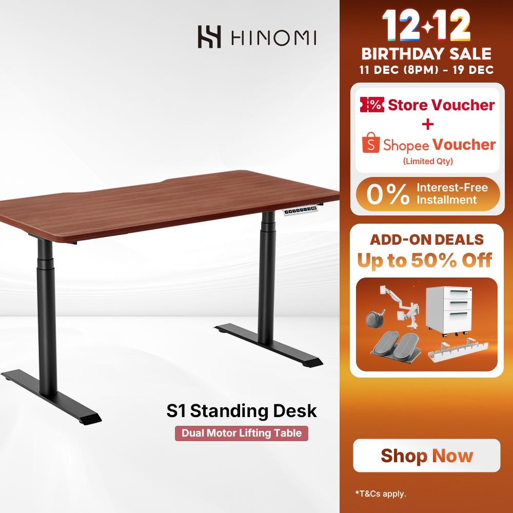 Hinomi S1 Ergonomic Home Office Standing Desk Electric Height Adjustable Dual Motor Table
