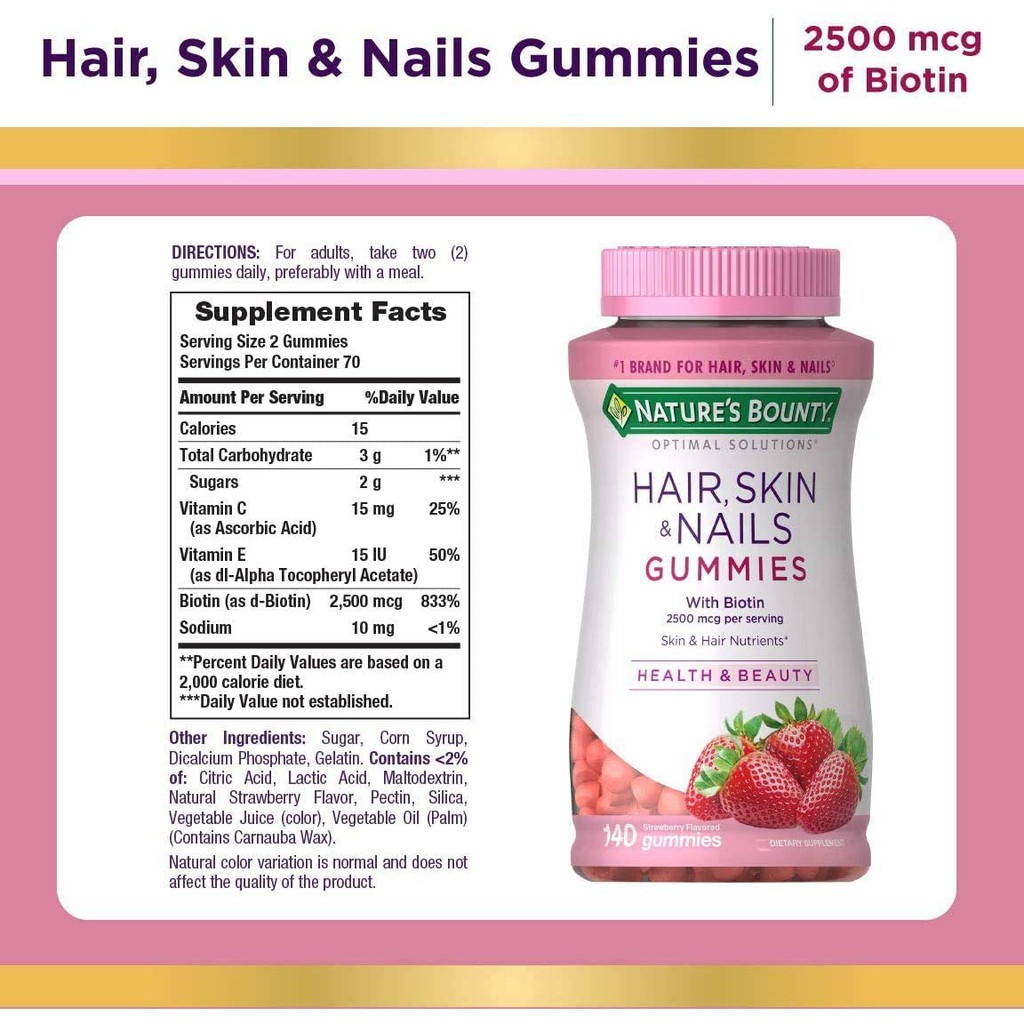 💯Nature's Bounty Hair, Skin & Nail 140/230 Gummies Strawberry Flavored *2-3 Days Delivery*