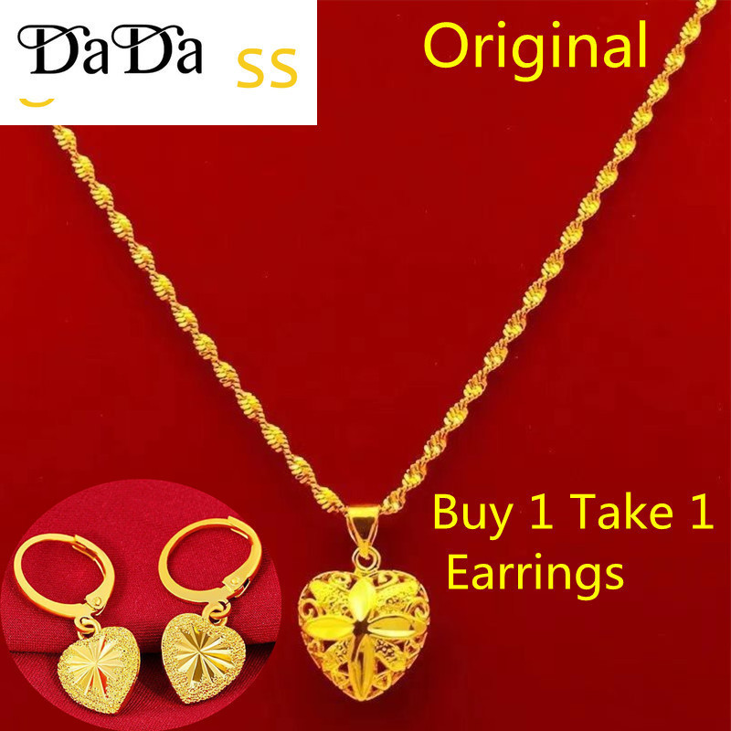 916 Gold Pawnable Necklace for Woman Buy 1 Take 1 Earrings Original Fashion Jewelry