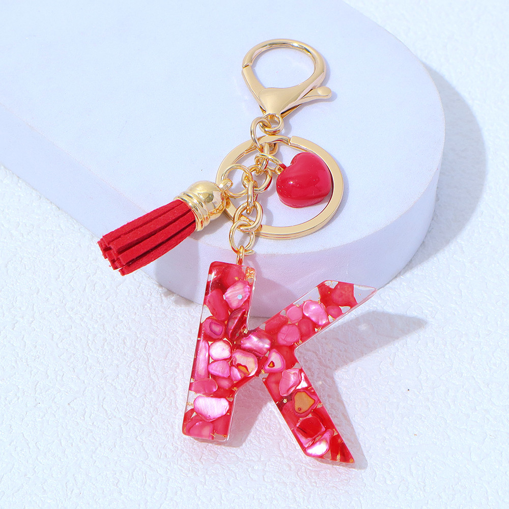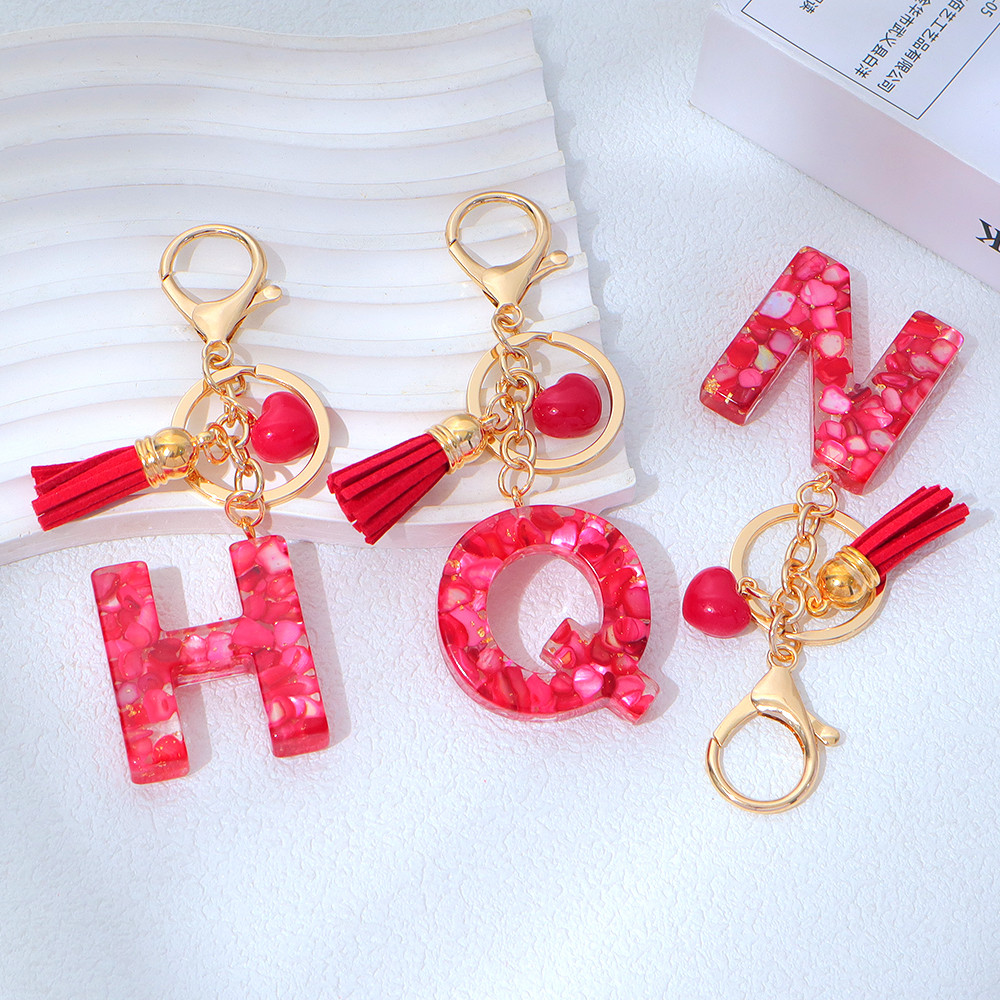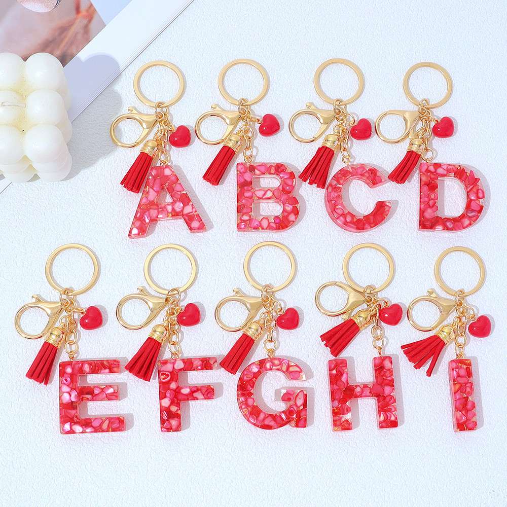 1Pcs Fashion Red A-Z Letter Keychains Exquisite Heart 26 Alphabet Resin Keyring Handbag Ornament Gift