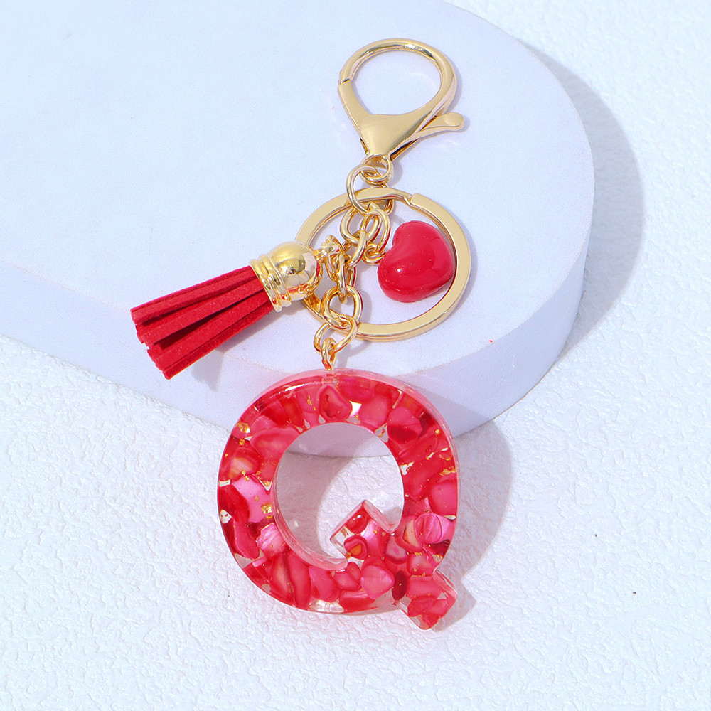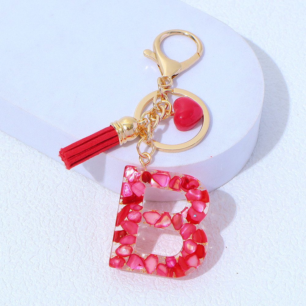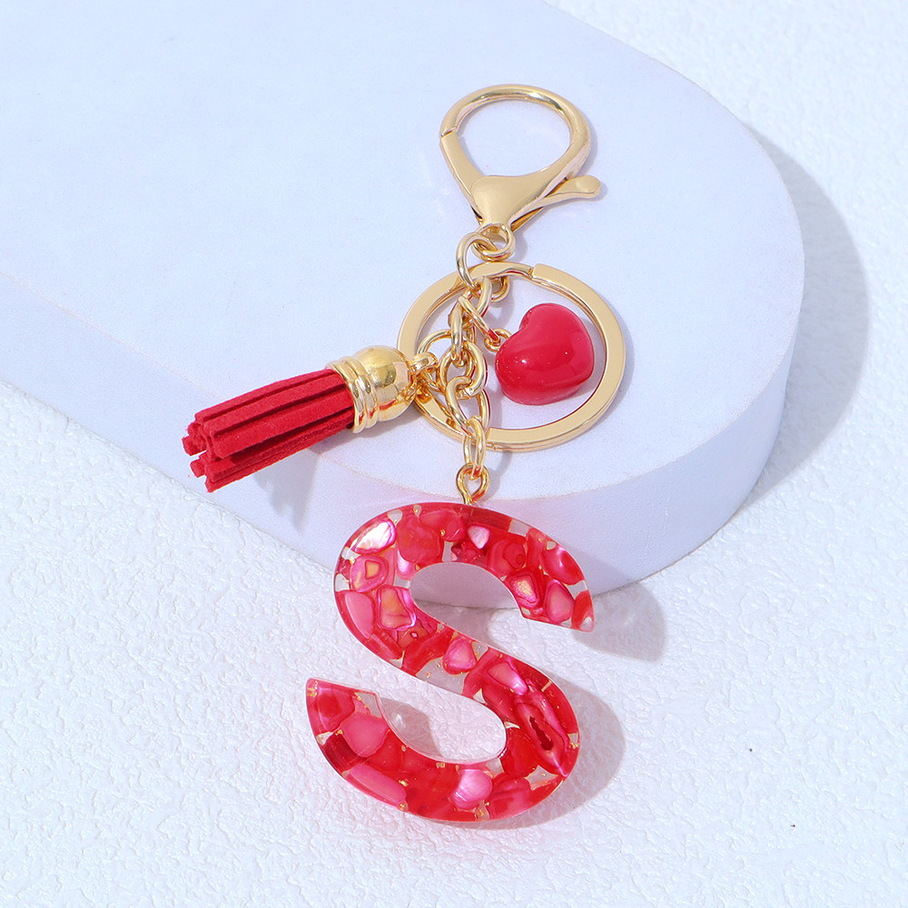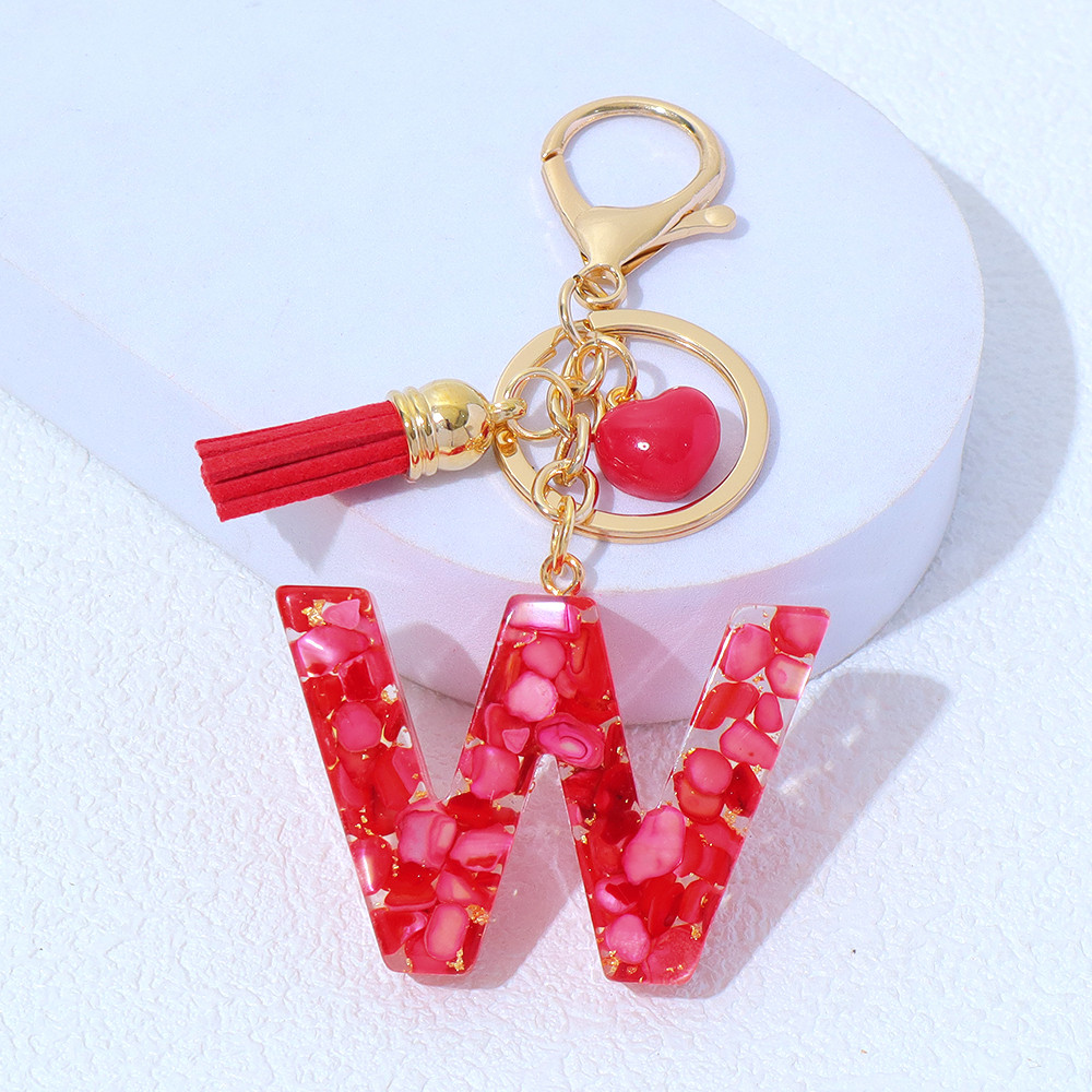 1Pcs Fashion Red A-Z Letter Keychains Exquisite Heart 26 Alphabet Resin Keyring Handbag Ornament Gift