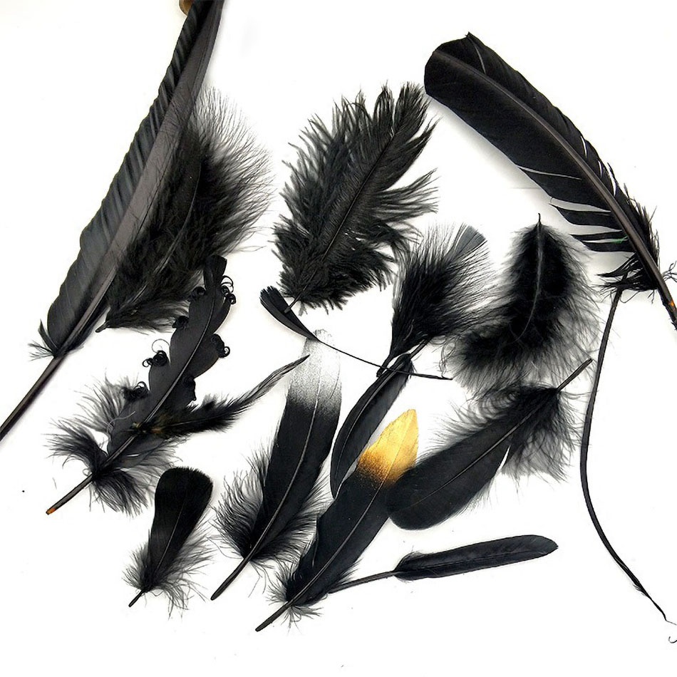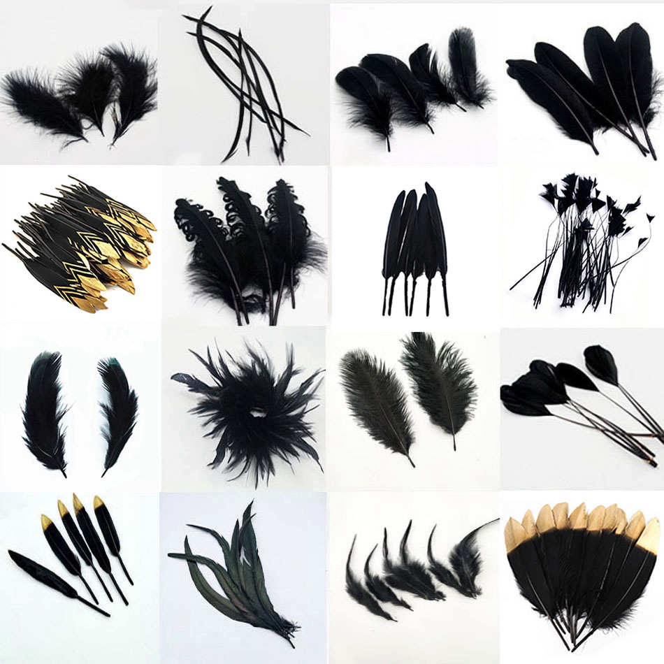 20pcs DIY Black Feathers Crafts Wedding Party Feather Jewelry Making Natural Gold Feathers Plume Christmas Home Decoration Accessories