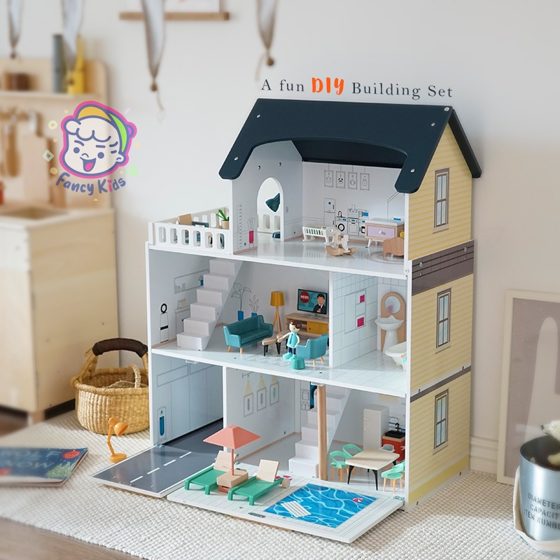 Premium Large Wooden Doll House Dollhouse with Furniture/Kids Villa Castle Bungalow Pretend Play Toy/Rumah Mainan Kayu