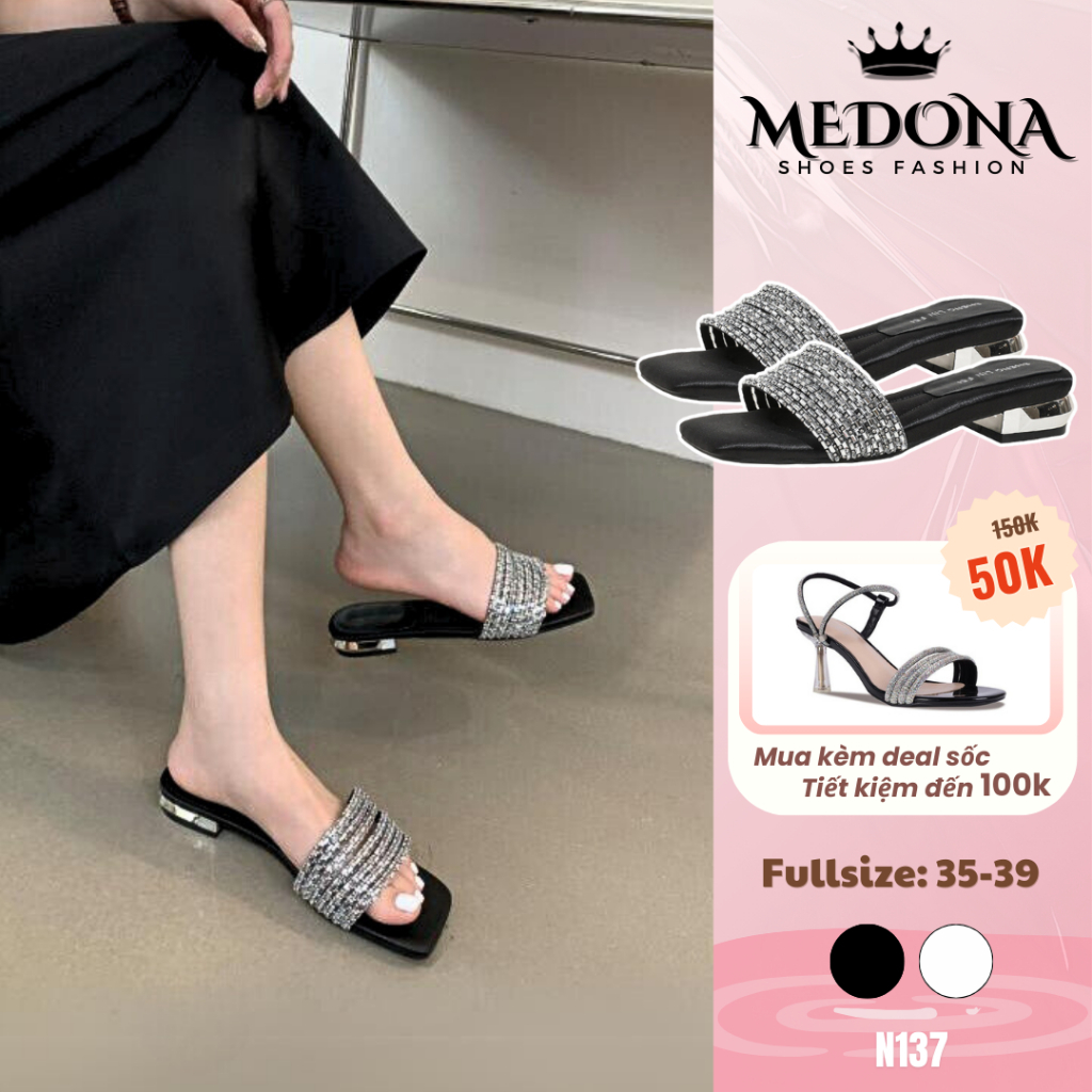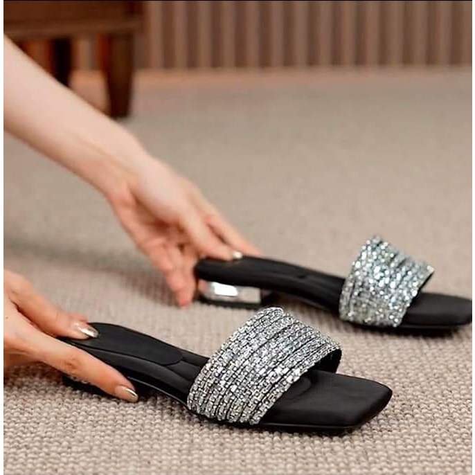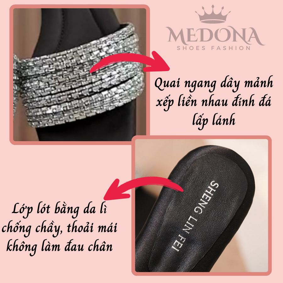 Women's sandals with stone straps, 2-inch low heel, soft and convenient silver sole - MEDONA