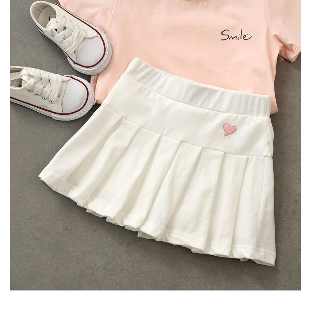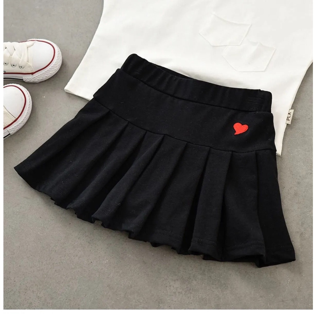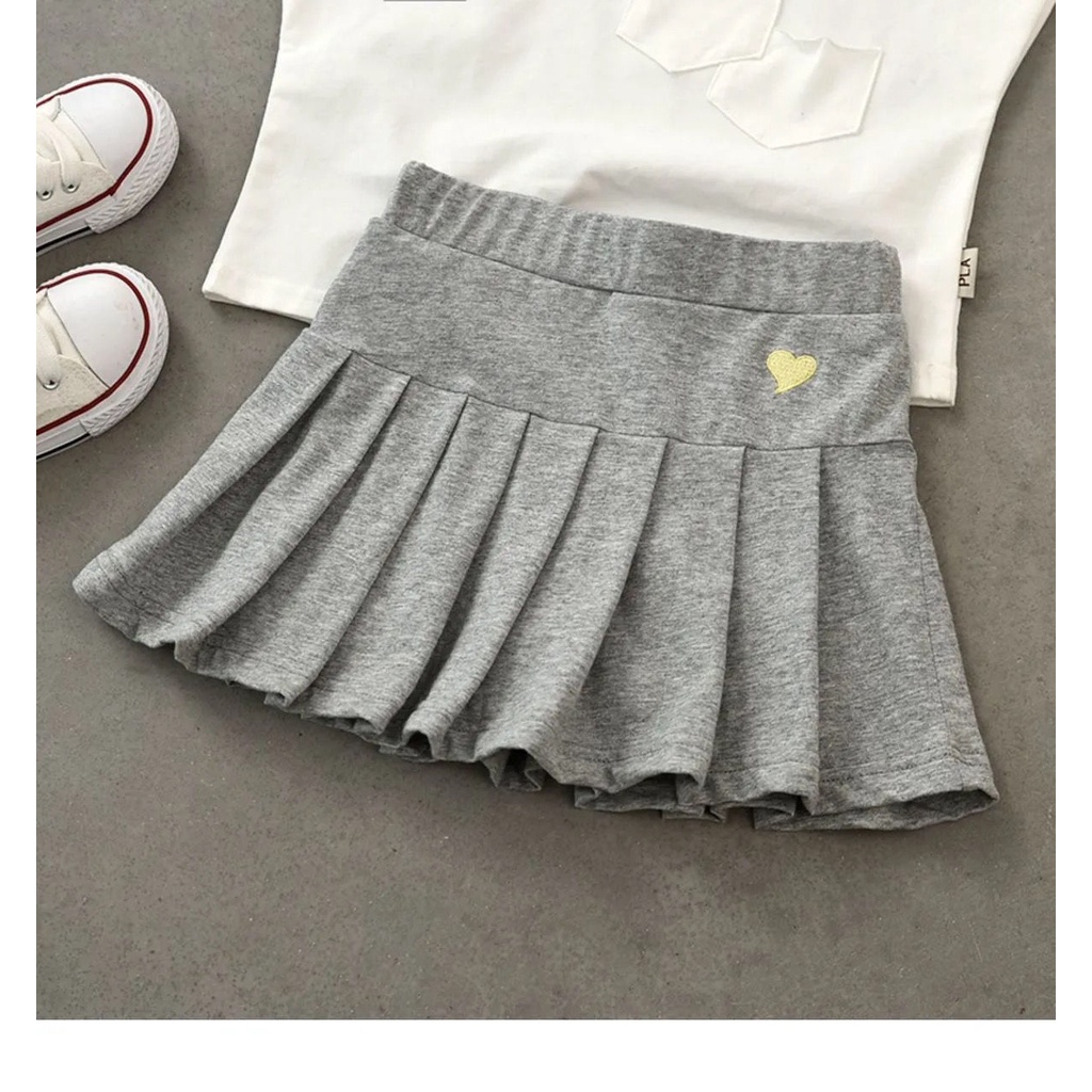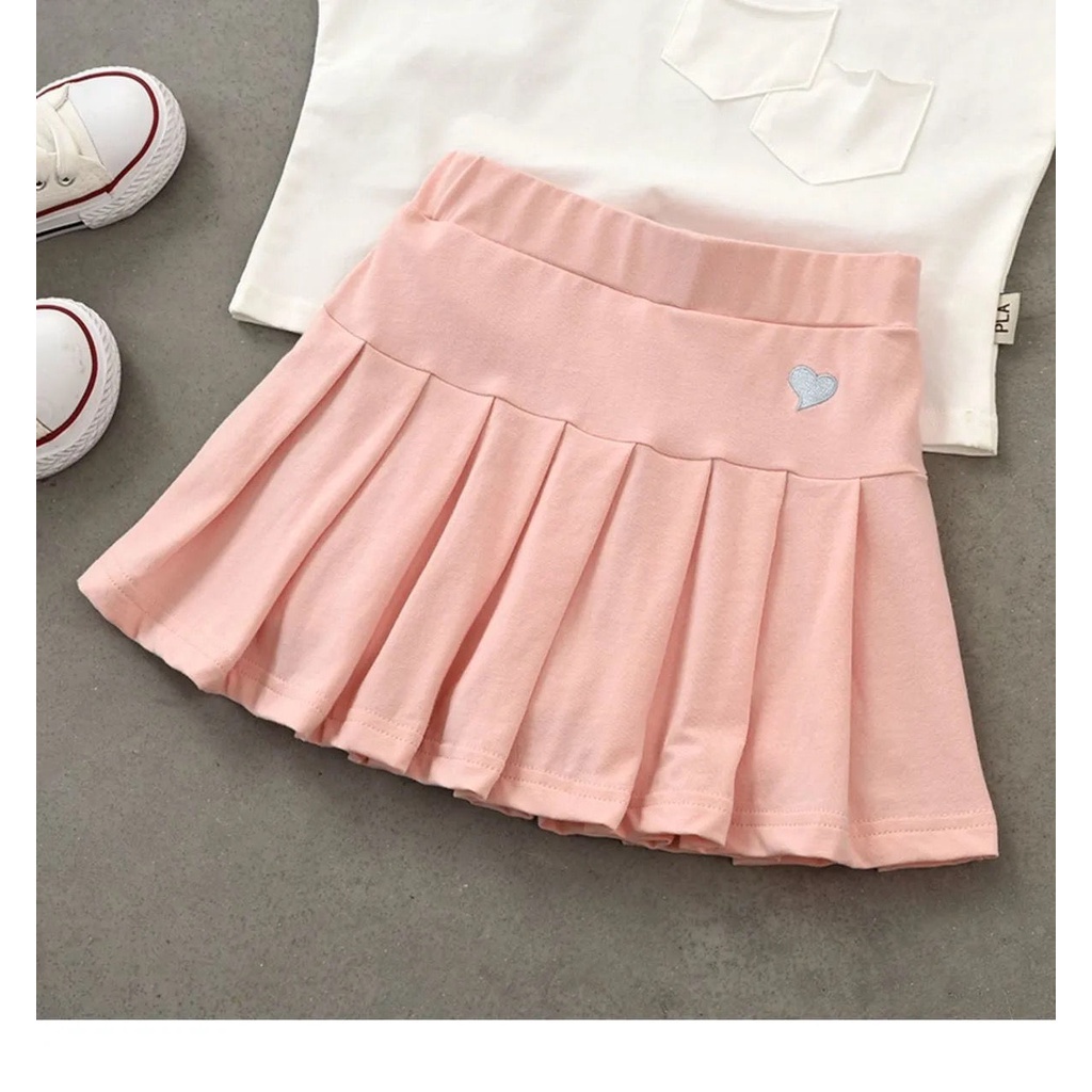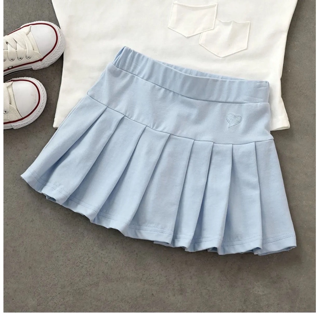 Girls Pleated Skirt Children's Cotton Plain Short Skirts with Safety Pants Kids Fashion