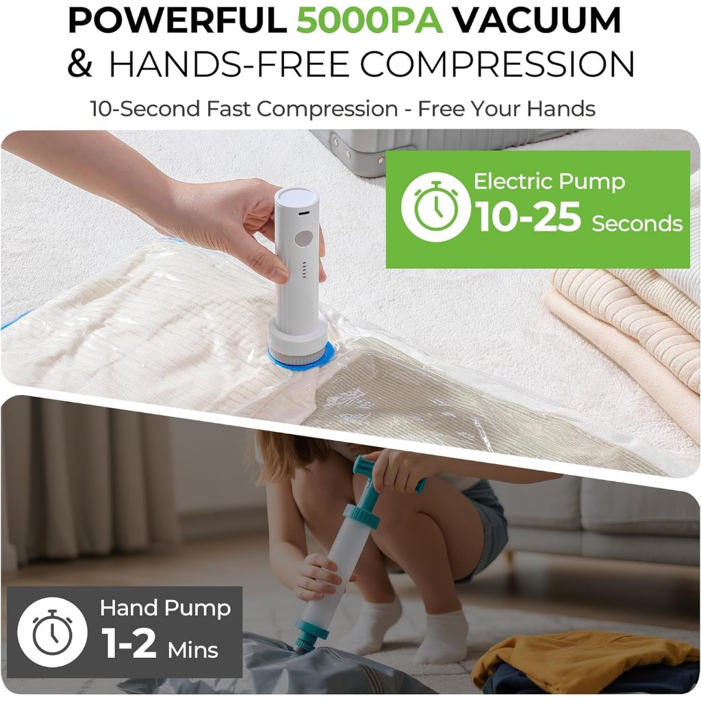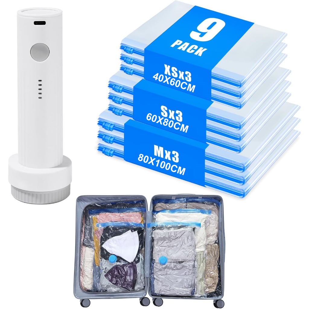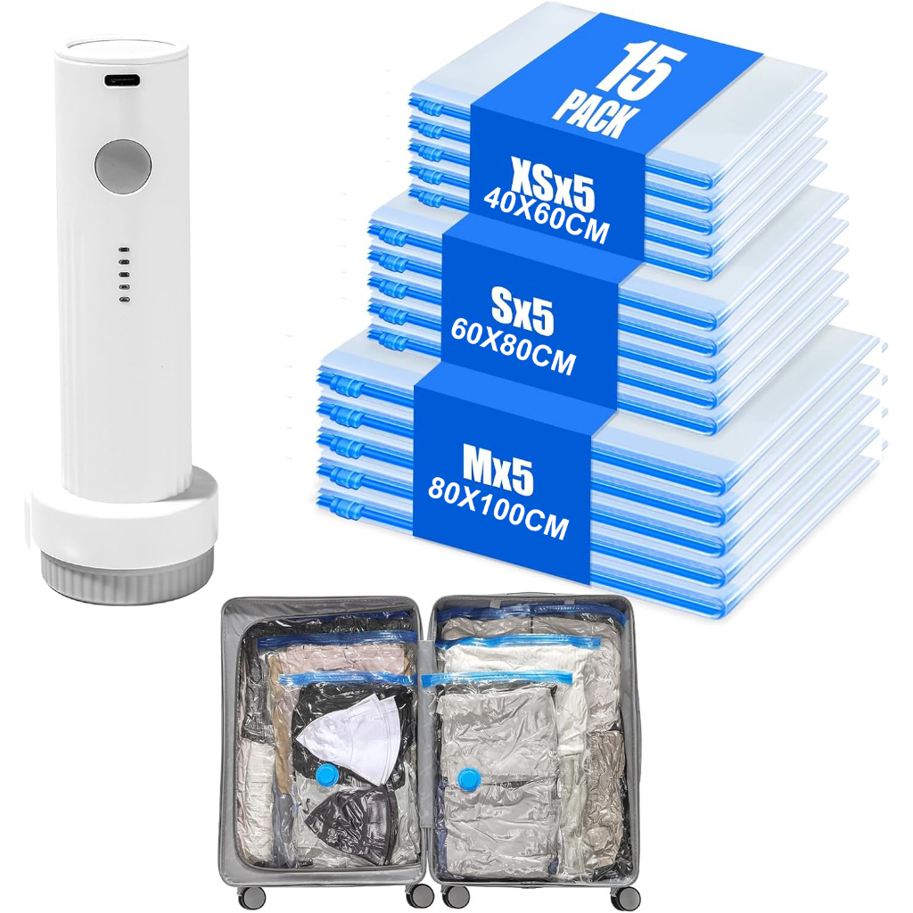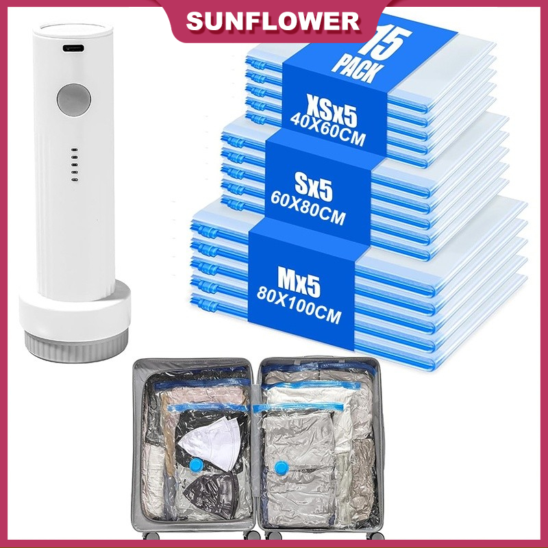 🔥SG stock🔥Vacuum Storage Bags for Travel - 15 Pack Compression Packing with Wireless Electric Pump for Luggage Vacuum Seal Bags for Clothes Space Saver Organizer for Moving Clothing Suitcase