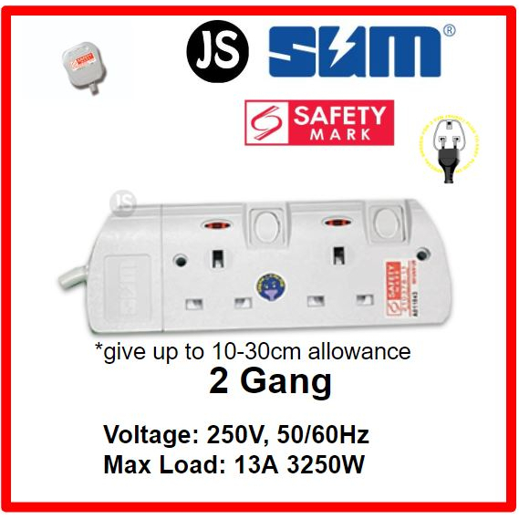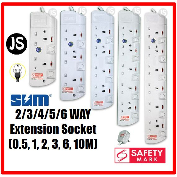 2/3/4/5/6 Gang Extension Socket with Singapore Safety Mark (0.5, 1, 2, 3, 6 & 10 Meters)
