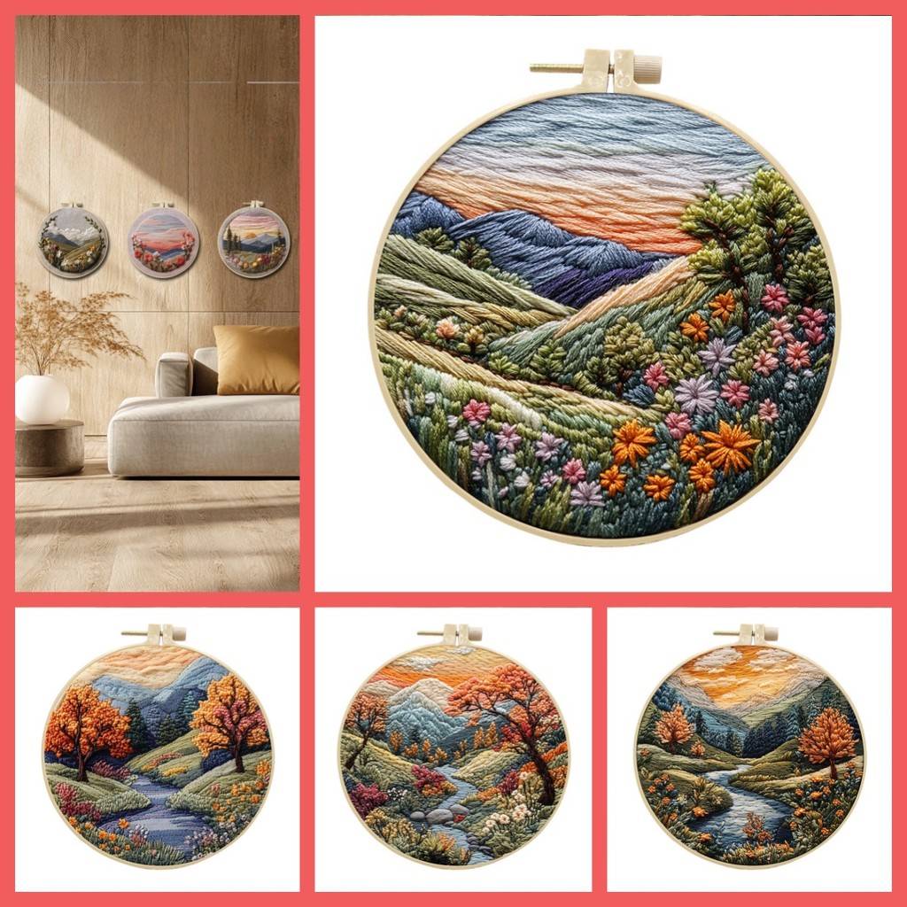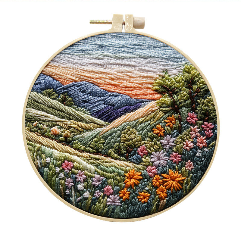 15cm Cross stitch/simple embroidery on circle/stitchwork decorations /material pack ready/Sunrise Scenery