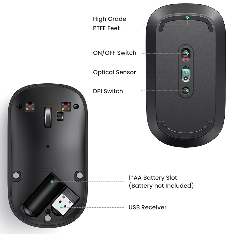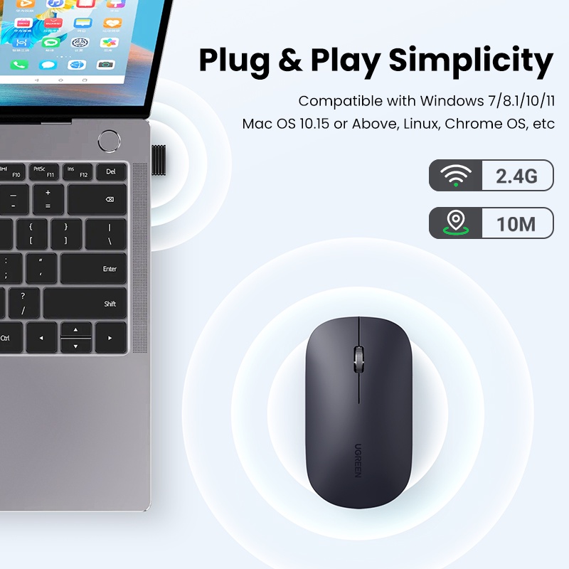 UGREEN Mouse 2.4G Wireless Bluetooth Dual Mode Silent Mouse 4000 DPI For Computer Laptop Mice Souris Sans Fil 3cm Thin Slim Quiet Mouse