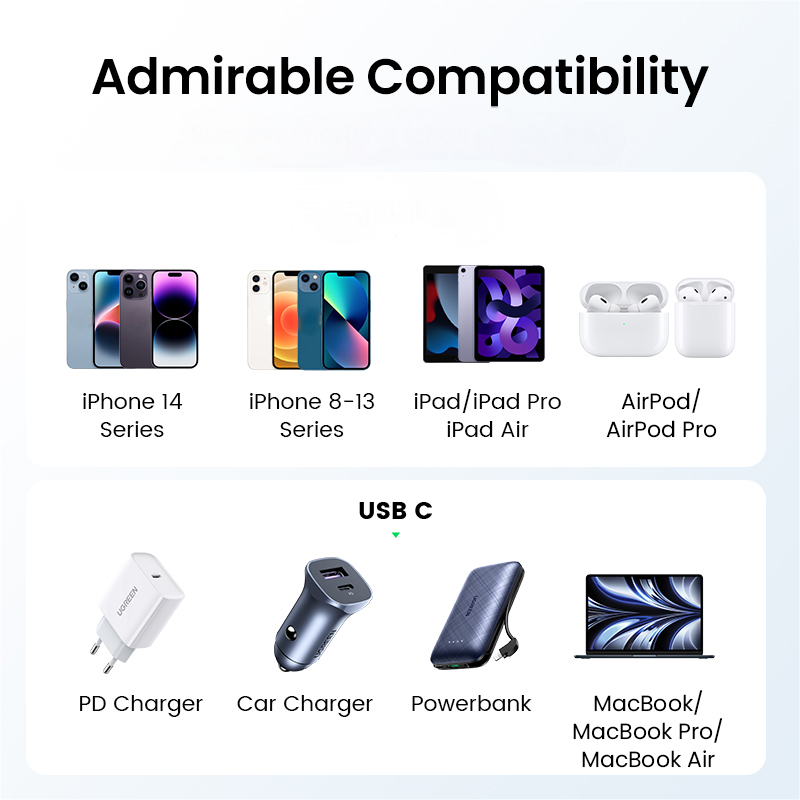 Ugreen PD20W MFi USB-C Fast Charging Braided Cable for iPhone 14/13/12/11