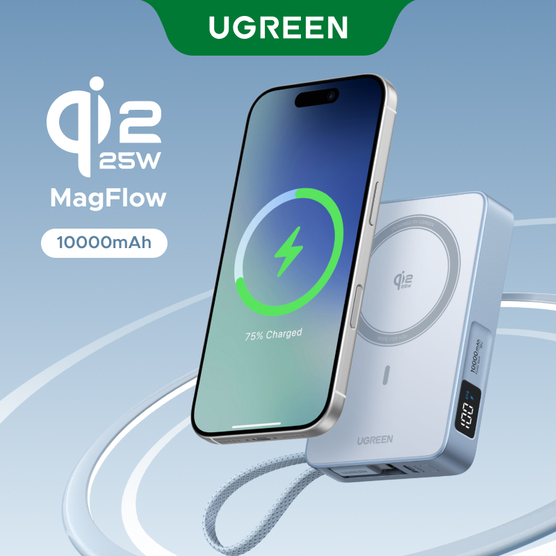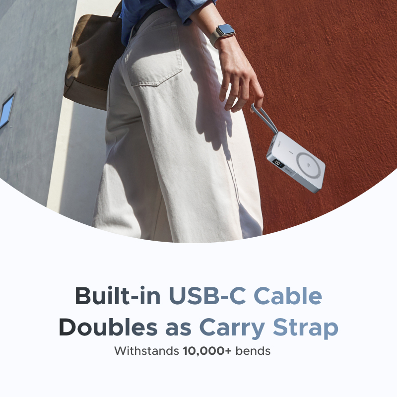 【Qi2 25W】Magnetic Wireless 10000mAh built-in cable Fast Charging Power Bank Digital screen 30W USB-C Space Gray Compatible with IP16 series