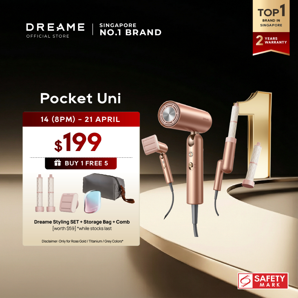 【NEW】Dreame Pocket Uni Hair Dryer | SmartVolt™ Global Voltage | Travel-Friendly | Curling, Unfrizz Nozzle | 330g | 60dB