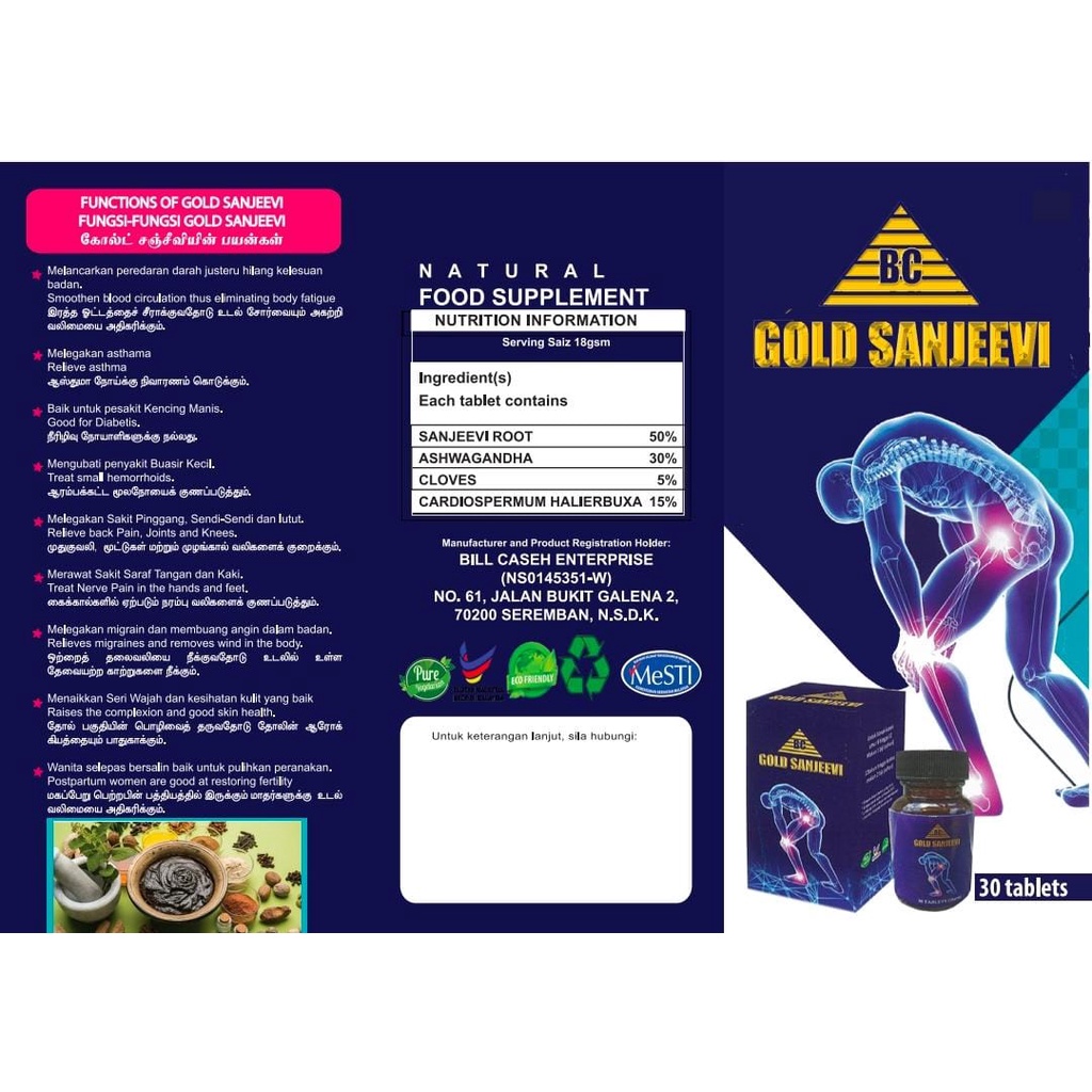 Restock!!! BC Gold Sanjeevi Pure Vegetarian Ayurvedic (30 tablets) / (10 tablets)
