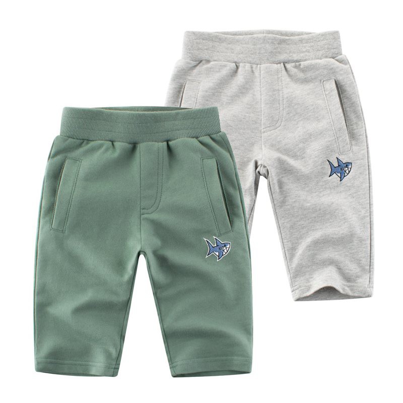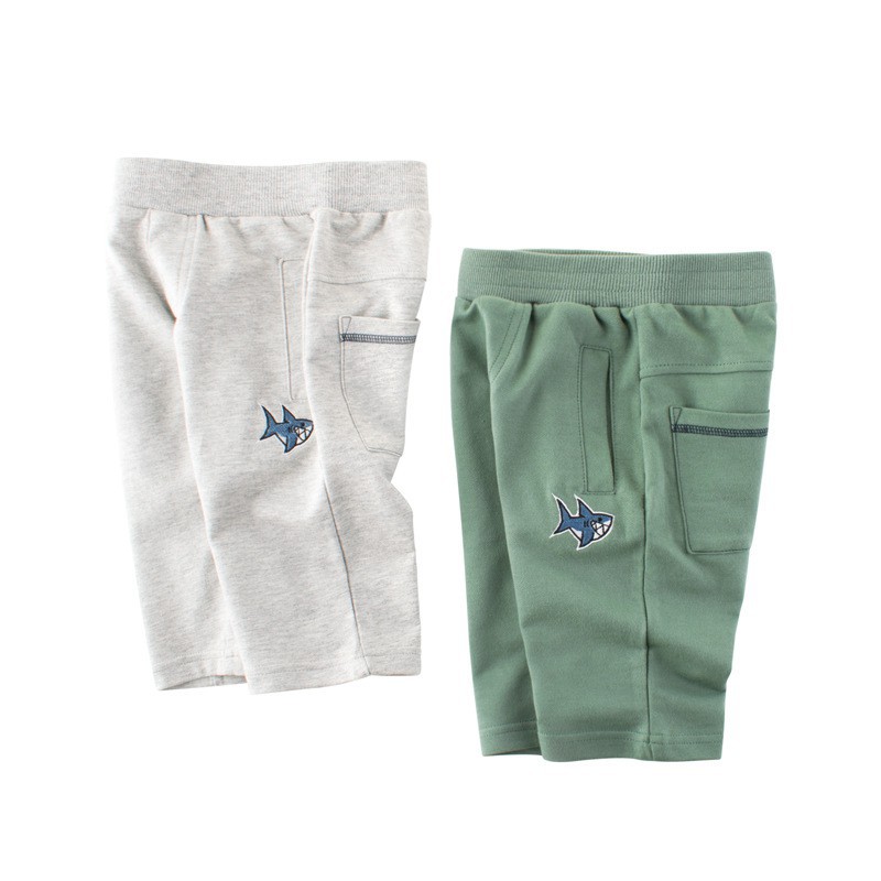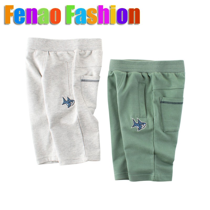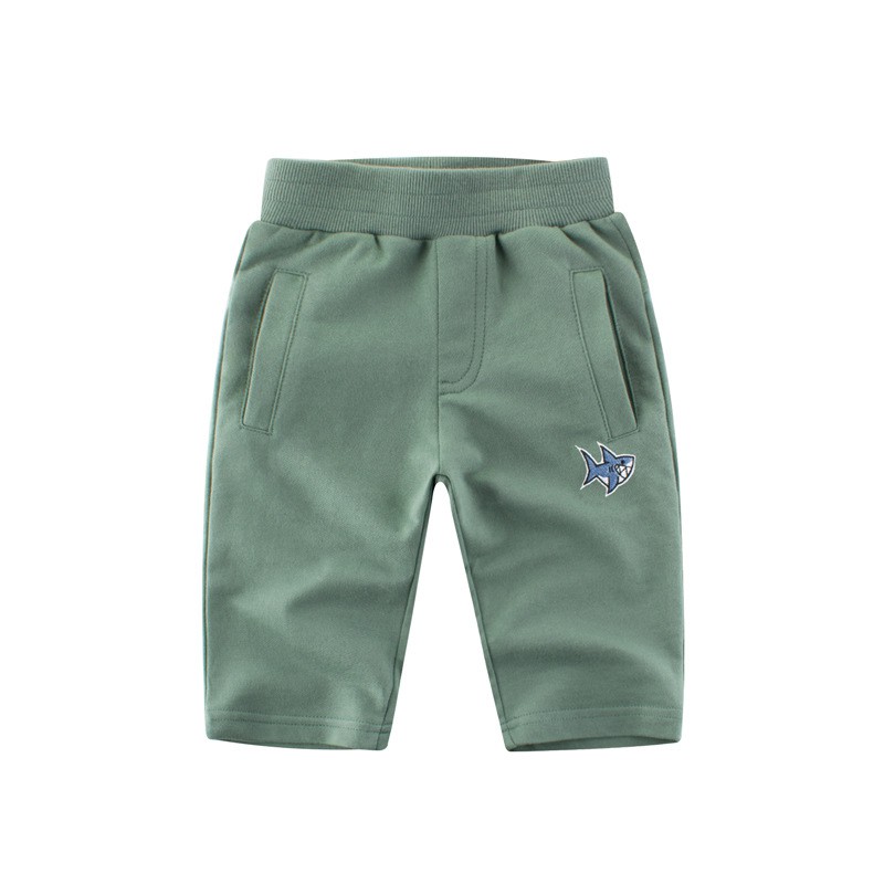 Boys Shorts Pants Cotton Kids Summer Green Short Wear with Embroidery Fish Children Pant