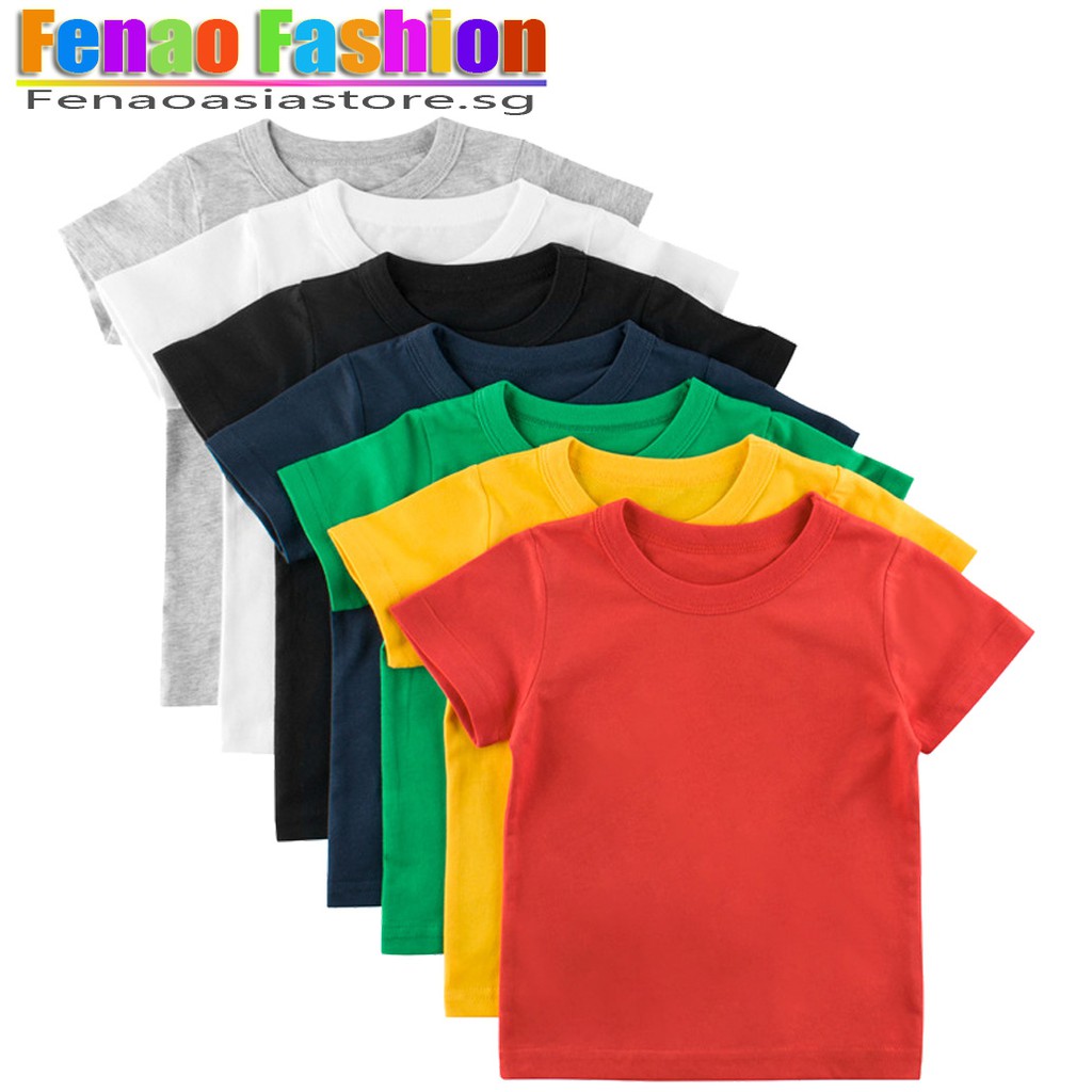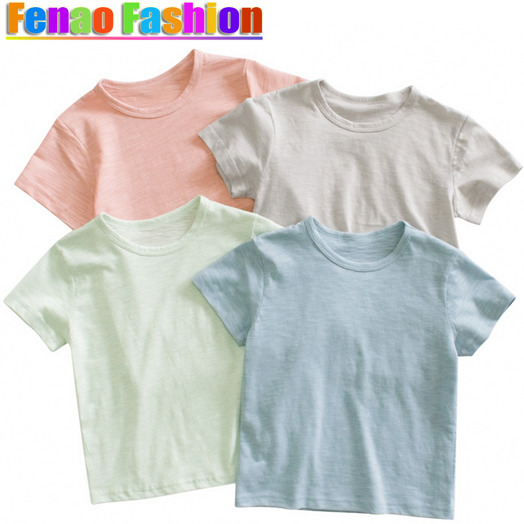 Kids T-shirt Boy Clothes Baby Top Solid Boys Clothing Children Plain TShirt Short Sleeve Stitching Cotton Crew-Neck Kid Fashion Loose Round Neck Summer Girls Top
