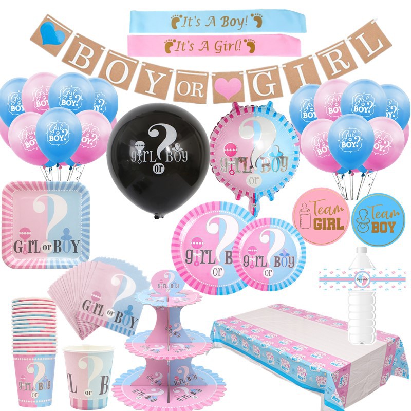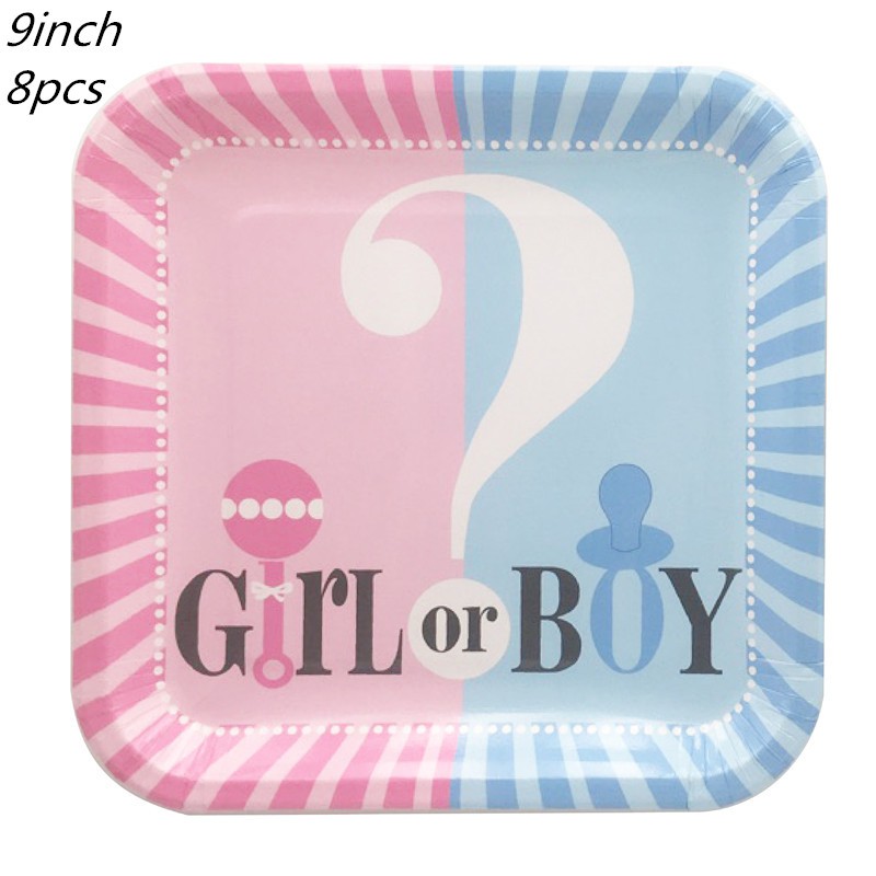 Gender Reveals Girl or Boy Baby Shower Disposable Cutlery Cup Paper Plate