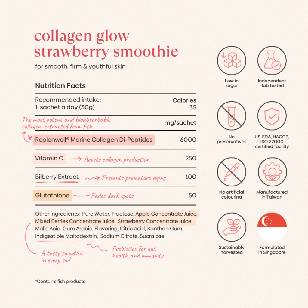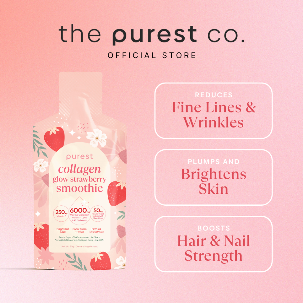 Purest Co Collagen Glow Strawberry Smoothie (For Radiant, Youthful Skin)