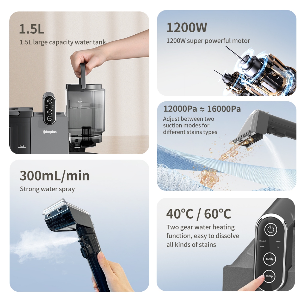 Simplus Kit Spot & Fabric Cleaner丨16,000Pa Suction丨40℃/60℃ Hot Water丨1.5L Tank丨300ml/min丨TexNew-F1 BYJH001