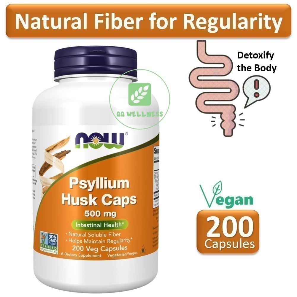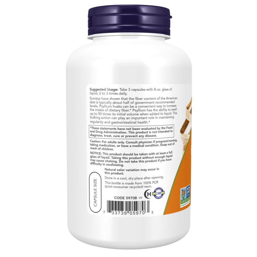 NOW Foods Psyllium Husk Caps 500mg 200 Vegetarian Capsules For Digestion Maintain Regularity Soluble Fiber