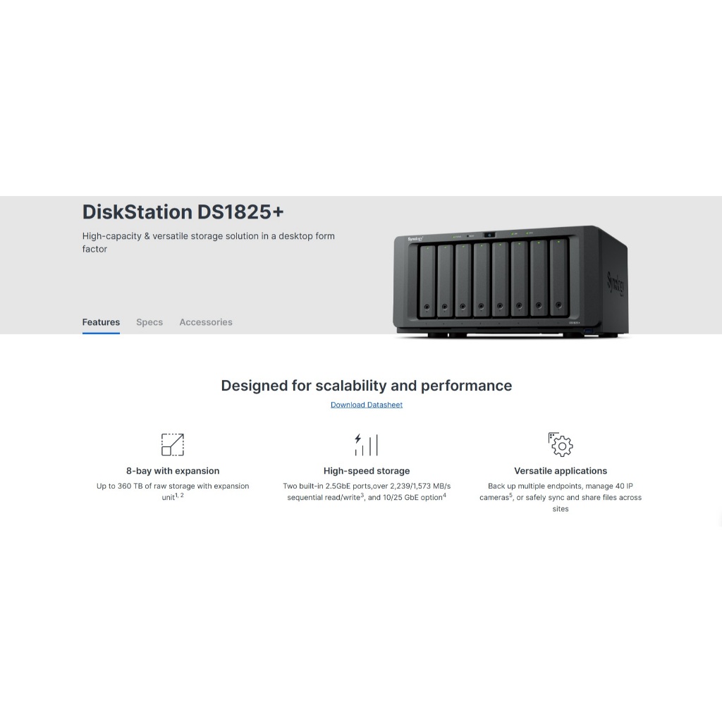 Synology DiskStation DS1825+ 8-Bay NAS ( without HDD , Replace Model DS1821+, only Support Synology Hard Drive )