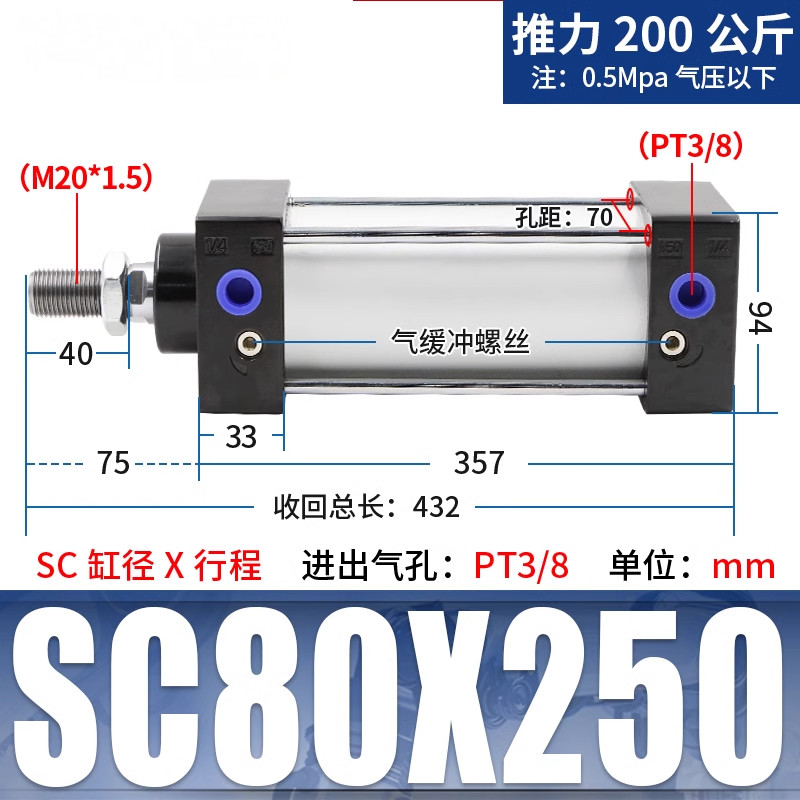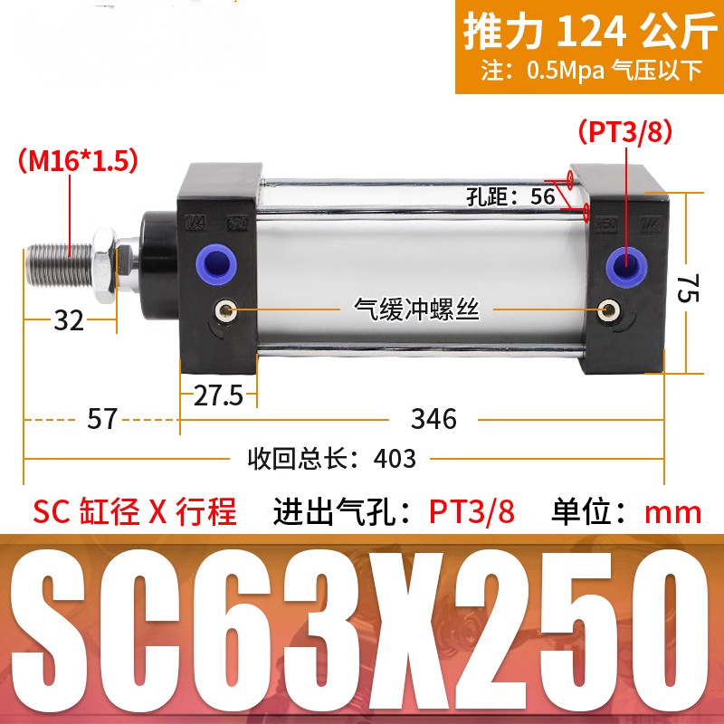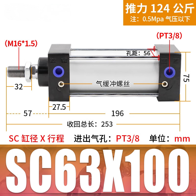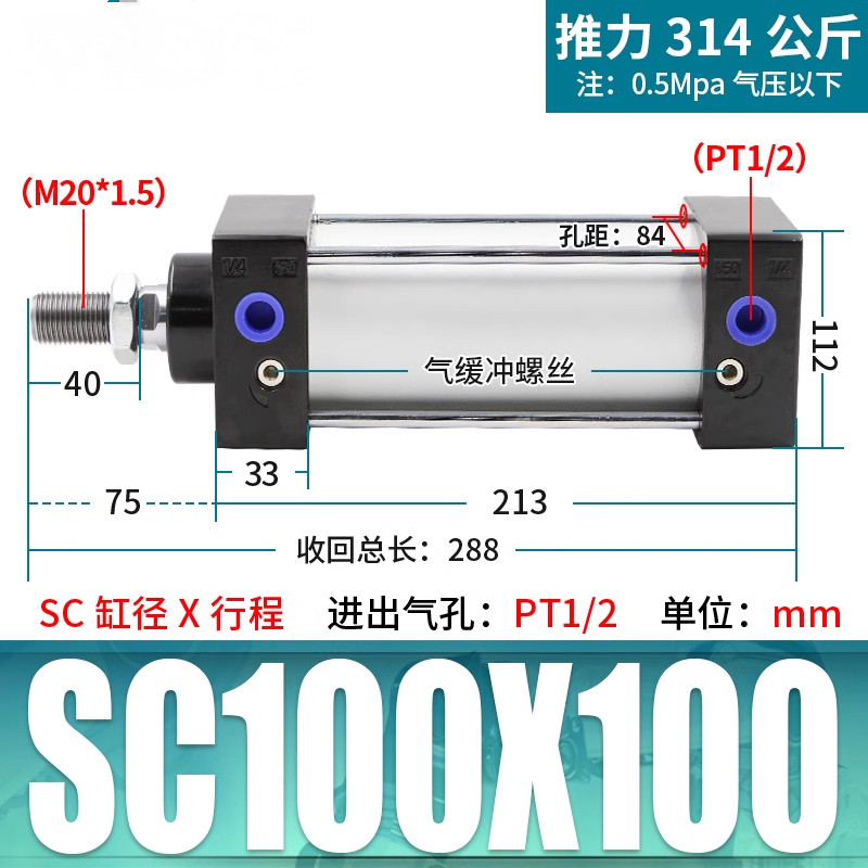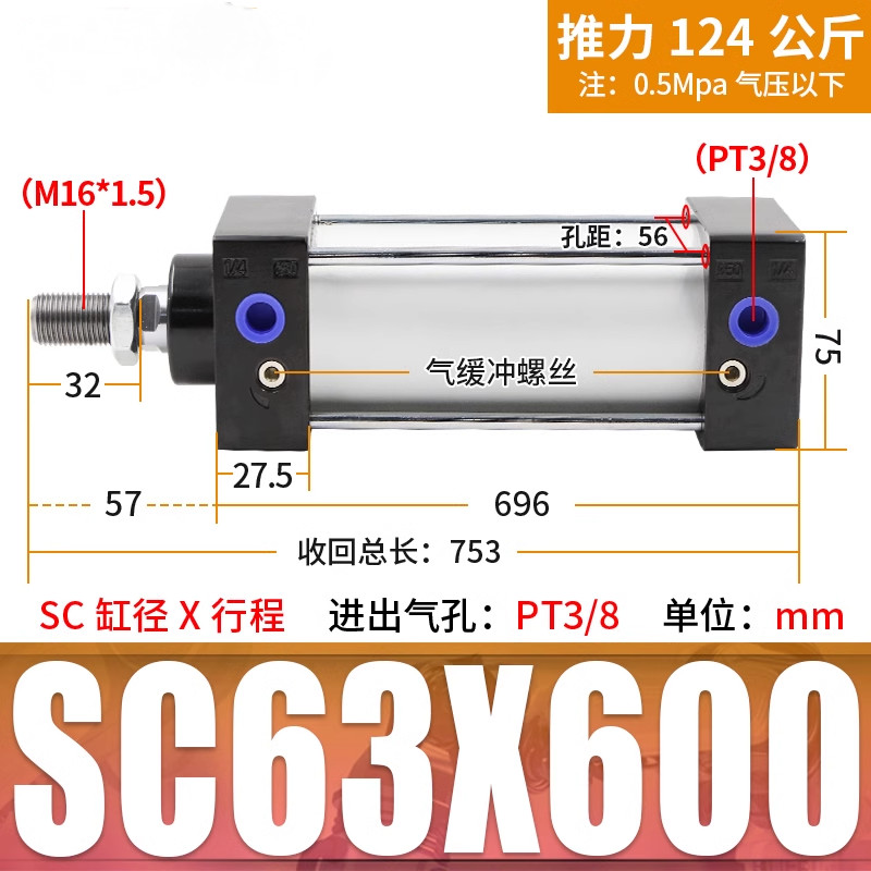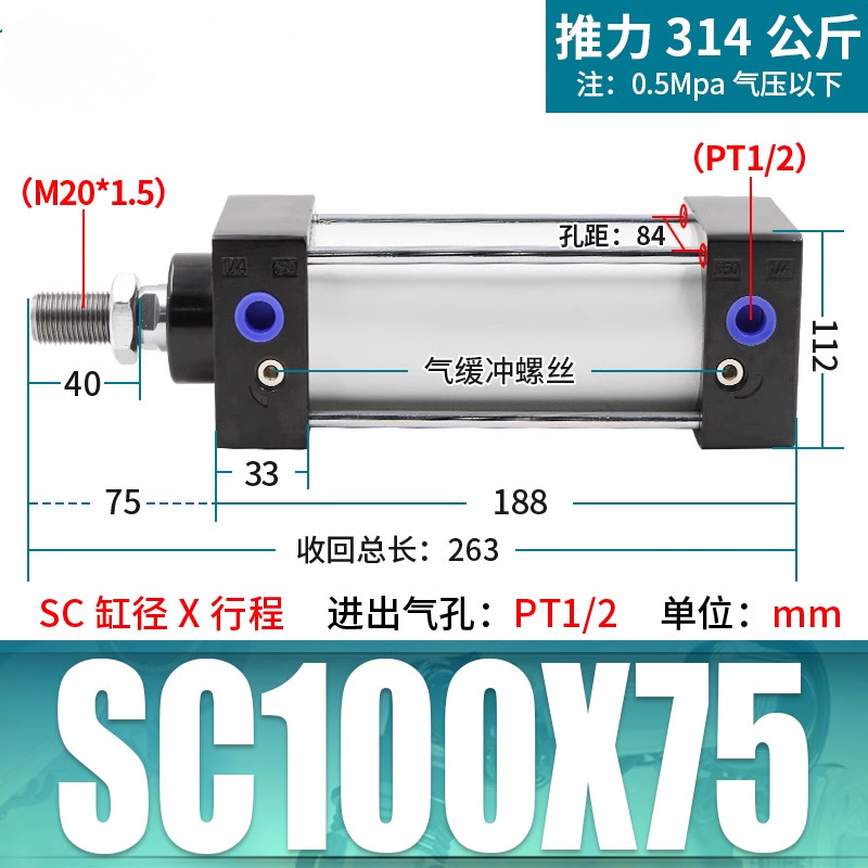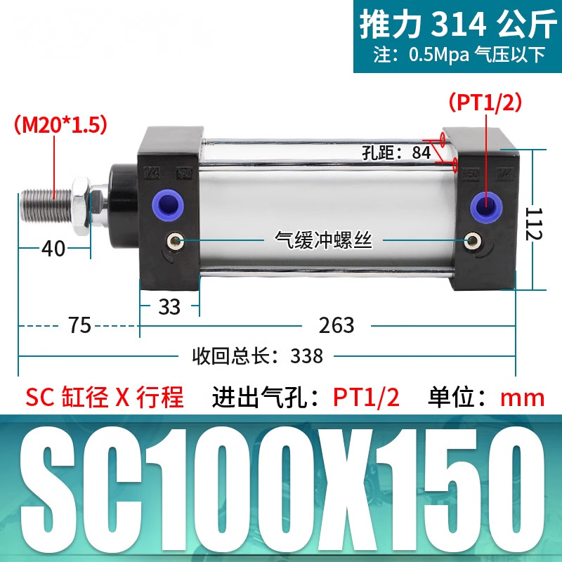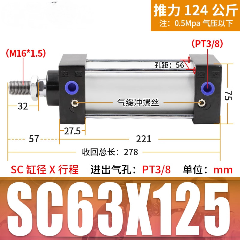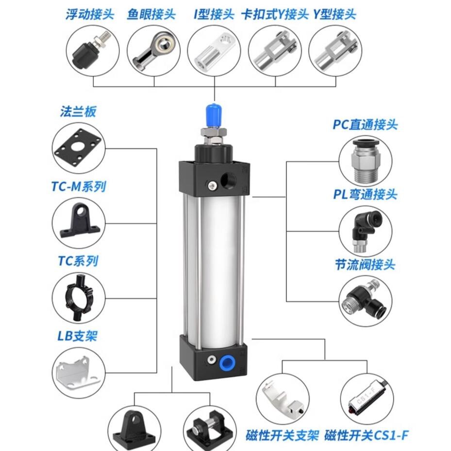 Pneumatic Air Cylinder SC Type Double Acting Heavy Air Cylinder 63/80/100mm Bore 25~500mm Stroke