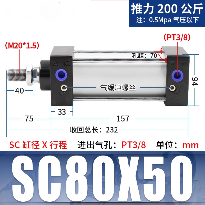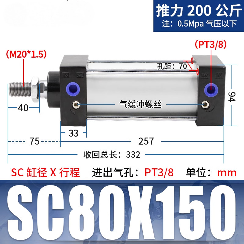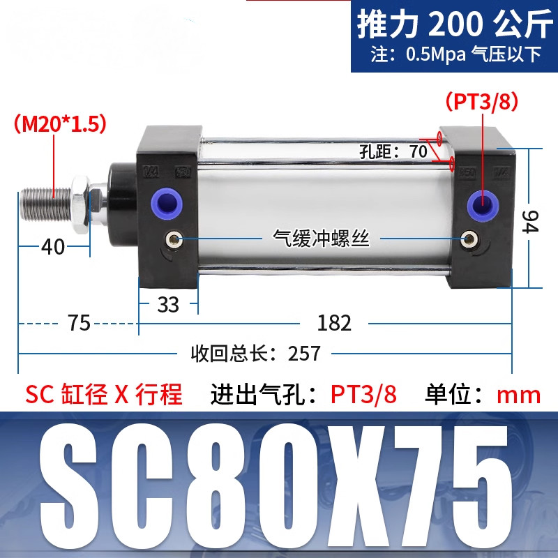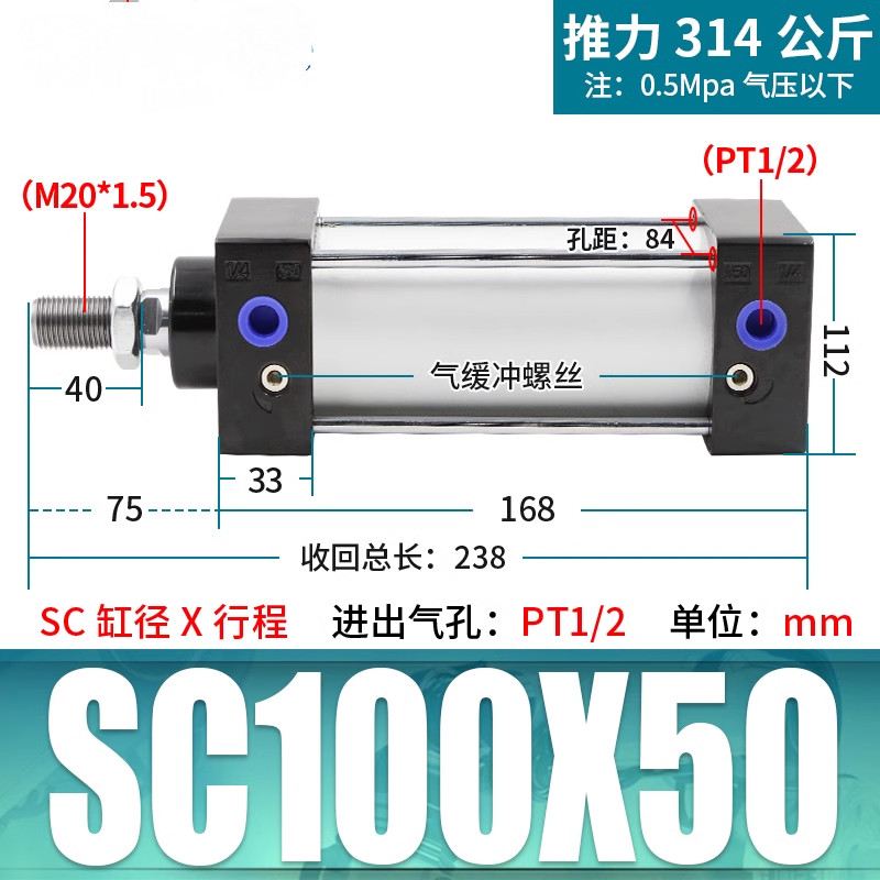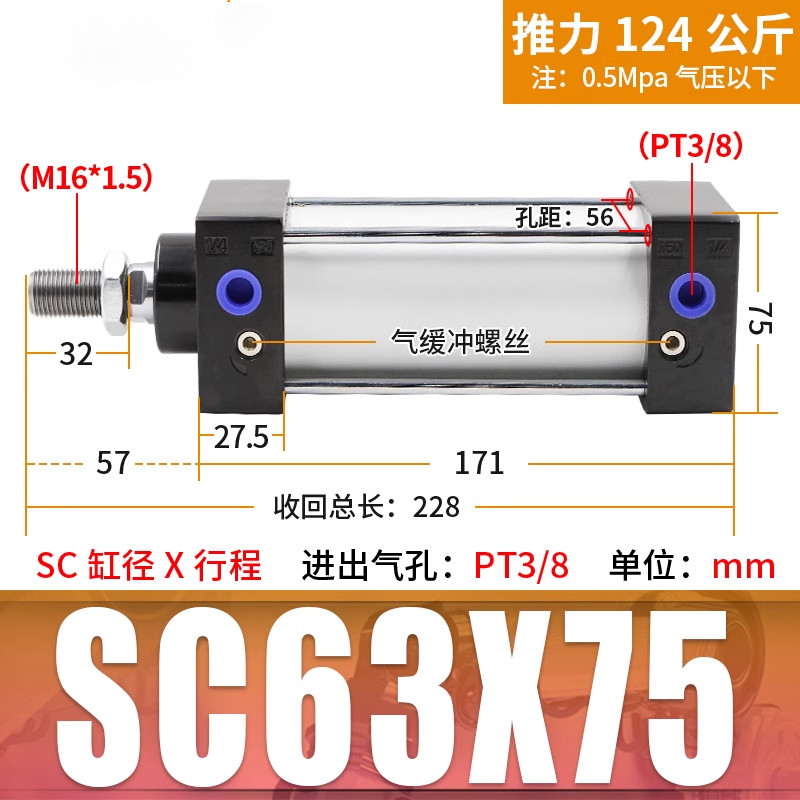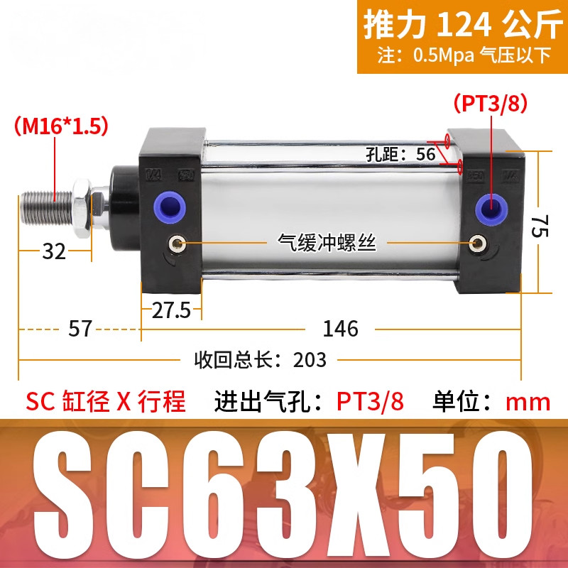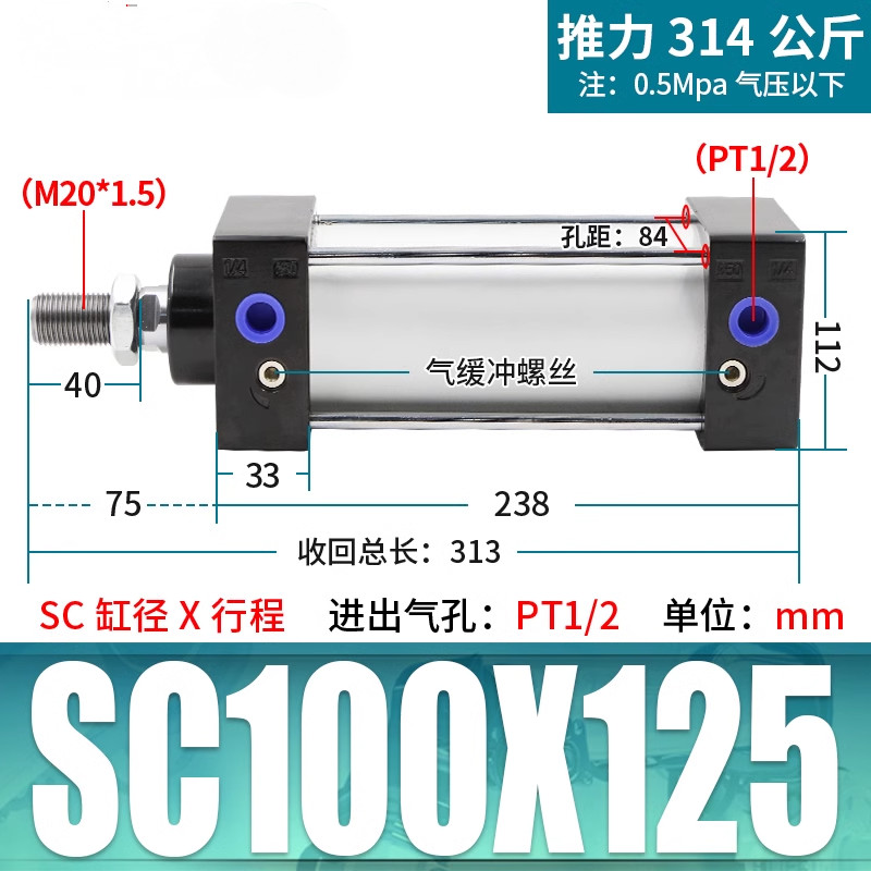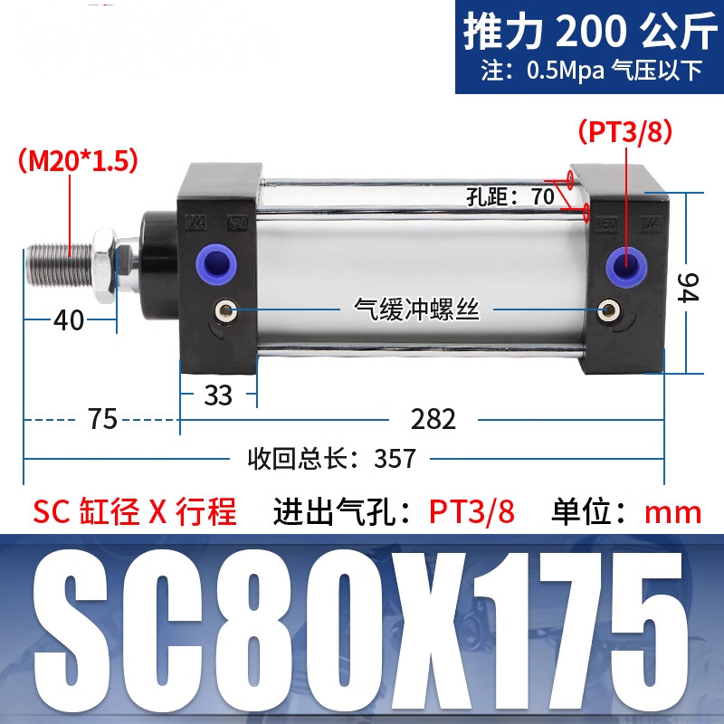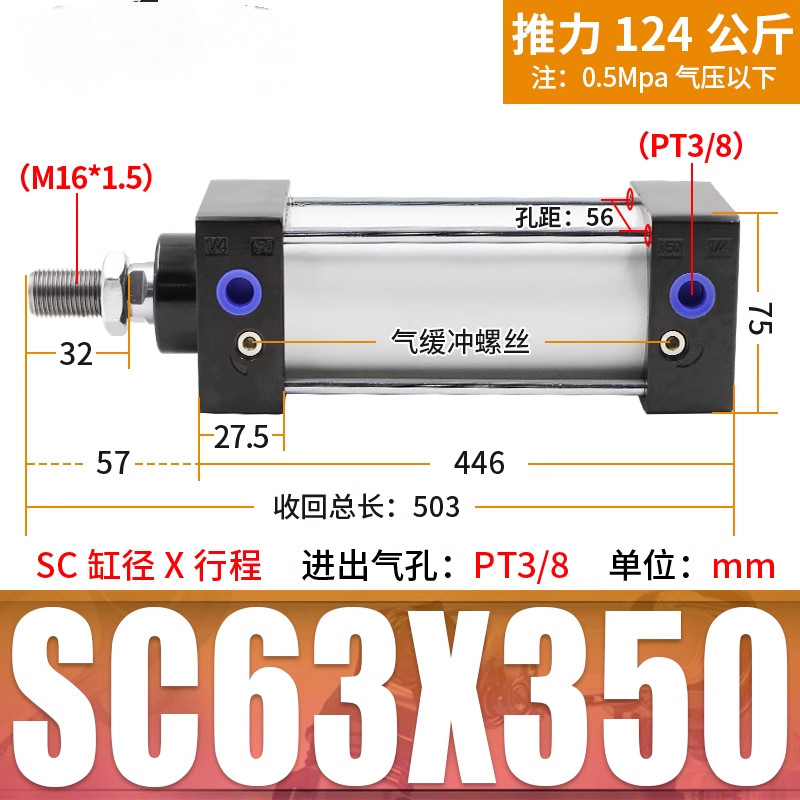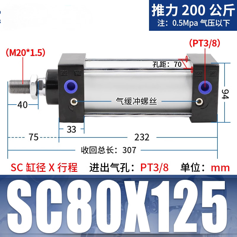 Pneumatic Air Cylinder SC Type Double Acting Heavy Air Cylinder 63/80/100mm Bore 25~500mm Stroke
