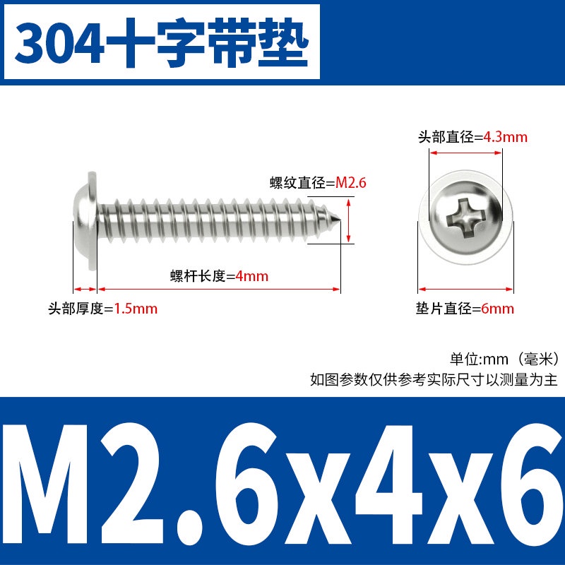 [WDY] 304 Stainless Steel Phillips Round Head With Washer Self-Tapping Screw PWA M2.3 M2.6