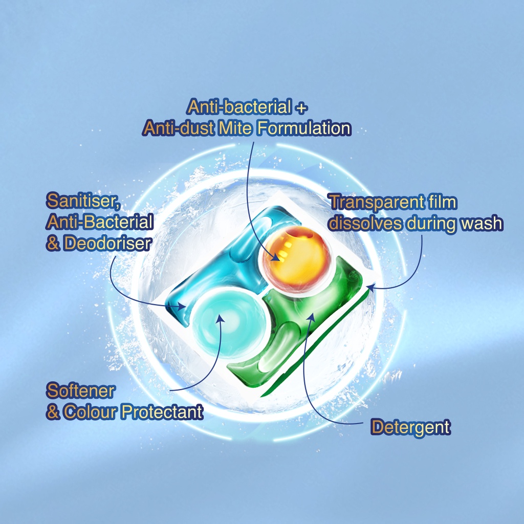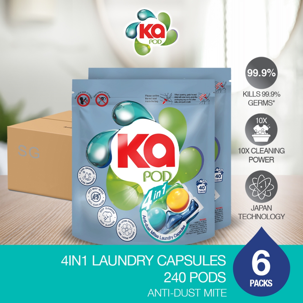 [New Look] Ka 4in1 Laundry Capsules Refill 40 Pods x 6 Packs – Anti-Dust Mite